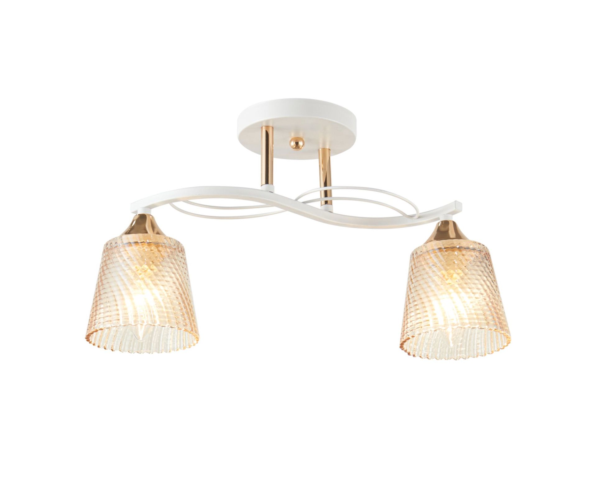 Декоративная люстра V 6348-2 WH+FG выполнена в сочетании белого корпуса и нежных золотистых декоративных акцентов, что создает атмосферу воздушности и изящества в интерьере. Два симметричных источника света с цоколем E27 позволяют выбрать лампы под нужный тон освещения – от теплого уютного до более ясного белого света, обеспечивая комфорт и функциональность. Металлический каркас с белым покрытием гарантирует современный вид и долговечность, а декоративные оттеночные вставки French-Gold придают теплу и легкому блеску. Плафоны выполнены из стекла с фактурой, помогают мягко рассеивать свет и создают приятную атмосферу без избыточной яркости или резких теней.