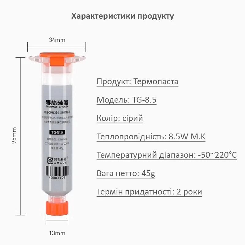 Термопаста Amaoe TG-8.5 силиконовая для смартфонов, мобильной техники / 8.5 Вт/м*К / 45g / 10cc Grey
