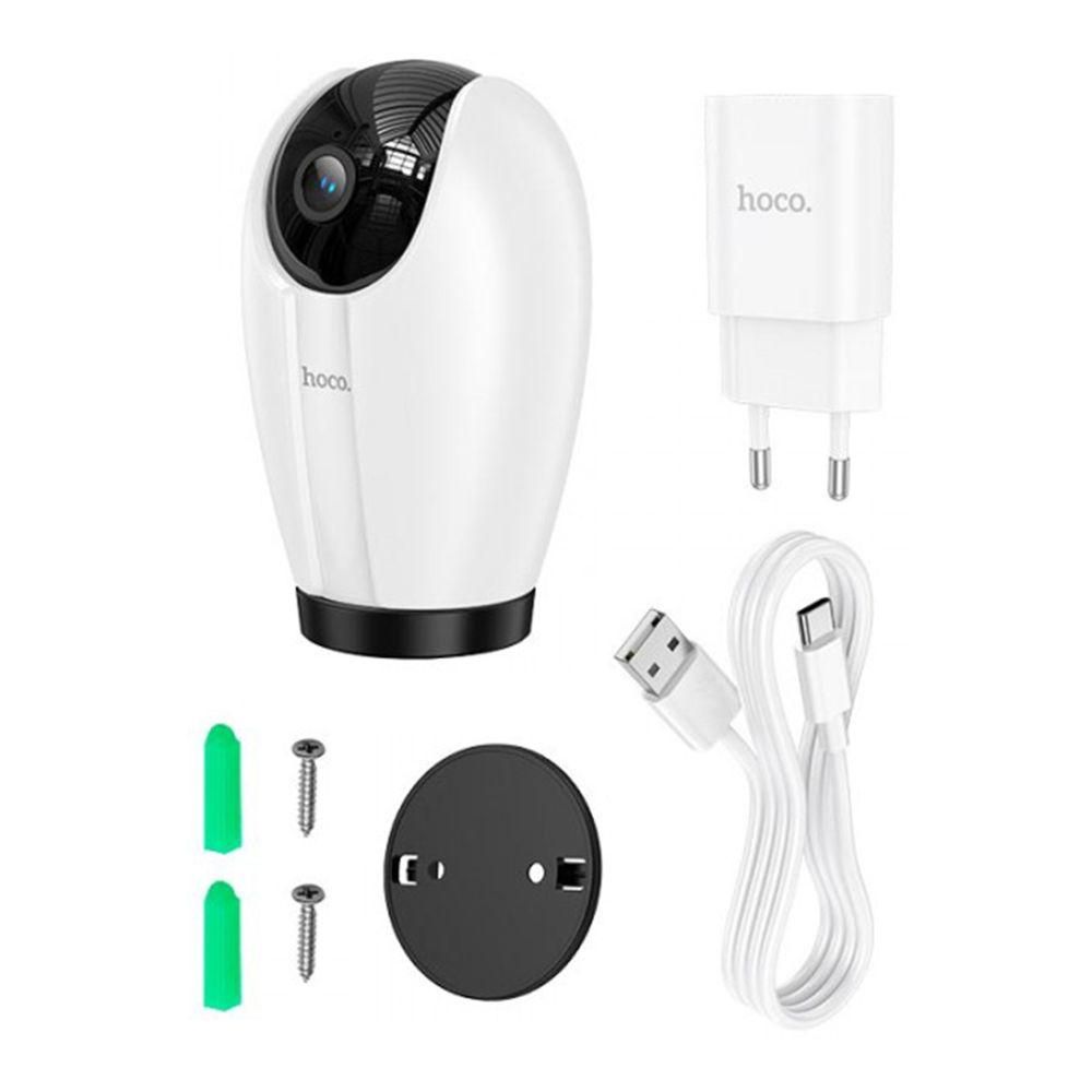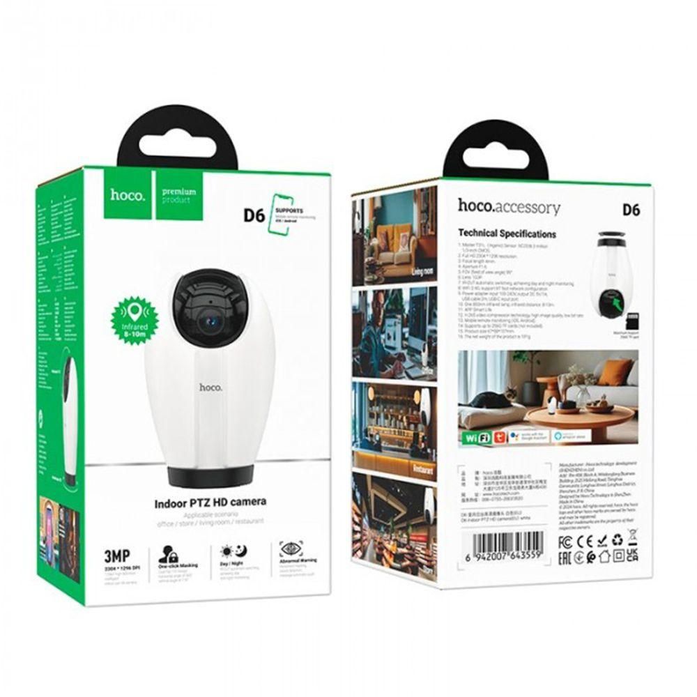 Внутренняя HD смарт камера Hoco D6 (EU) — это высокотехнологичное решение для обеспечения безопасности дома, офиса или любого другого помещения. Благодаря высокому разрешению, интеллектуальным функциям и удобному управлению через мобильное приложение, она позволяет вести круглосуточное наблюдение и мгновенно реагировать на любые события. Особенности и преимущества внутренней HD смарт камеры Hoco D6: • Современный дизайн с двухцветной расцветкой, обтекаемой формой, стильными матовыми и глянцевыми деталями. • Компактные размеры: 72×72×109мм, — не отвлекает внимание и не занимает много места, например, на полке или столе. • Надежные электронные компоненты и качественная сборка корпусных деталей из прочного ABS пластика и поликарбоната. • Устойчивое основание с противоскользящими накладками и съемной панелью для монтажа на потолок или стену. • Производительный процессор изображения и современный CMOS сенсор с разрешением 3MP (2304×1296 пикселей). • Качественный объектив с широким углом обзора, линзами 1G3P, апертурой F2.0 и фокусным расстоянием 4.0мм. • Инфракрасная подсветка с эффективным освещением объектов на расстоянии 8–10м и функция автоматического переключения между ночным и дневным режимами. • Двойная шарнирная система, которая отвечает за вращение по горизонтали в пределах 355° и по вертикали в пределах 110°. • Модули Bluetooth и Wi–Fi (2.4GHz) для настройки и мониторинга обстановки с возможностью вращения через приложение Smart Life на смартфоне. • Голосовая связь в режиме реального времени (интерком) и функция определения движения с отправкой оповещений на смартфон. • Слот для карты памяти TF и разъем Type–C для подключения к электросети с помощью комплектного USB кабеля и сетевого адаптера с вилкой EU. Hoco D6 объединяет в себе современный дизайн, передовые технологии видеонаблюдения и удобное дистанционное управление, что делает ее идеальным выбором для тех, кто ценит безопасность и комфорт.
