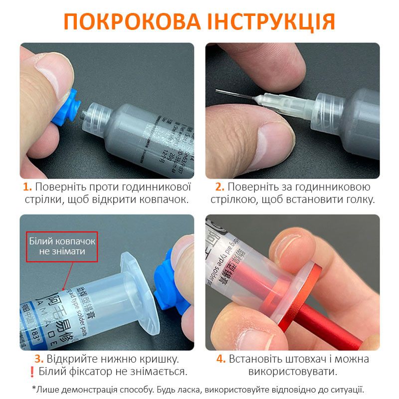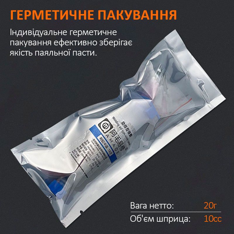 - Эта паяльная паста поставляется в удобном шприце 10cc с комплектом игл разного диаметра.