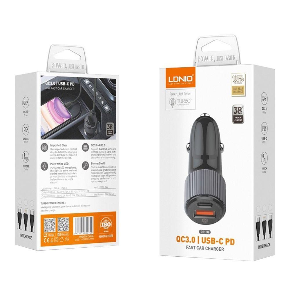 Авто Зарядное Устройство LDNIO C510Q QC3.0/PD 38W Цвет Черный