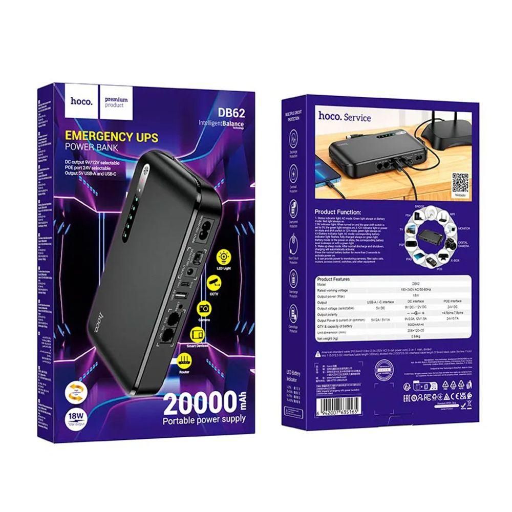 Источник бесперебойного питания Hoco DB62 — это компактное, но мощное решение для обеспечения безопасности и стабильной работы электротехники при экстренном отключении электричества. Высокая производительность, портативность и широкий спектр возможностей делают его идеальным выбором для дома, офиса и других мест, где стабильное электроснабжение играет важную роль. Особенности и преимущества ИБП (UPS) Hoco DB62: • Современный дизайн с практичными скругленными углами и стильной глянцевой окантовкой с плавными изгибами. • Компактные размеры: 206×120×35мм, — упрощают транспортировку для удобного использования в любом месте. • Качественная сборка корпусных деталей из прочного ABS пластика с приятной на ощупь матовой поверхностью. • Основание с 4 противоскользящими накладками и 2 отверстиями для крепления на стену, например, возле роутера. • Энергоэффективная батарея емкостью 20000mAh (64Wh) с низким уровнем саморазряда и увеличенным ресурсом работы. • Кнопка включения и LED индикаторы для контроля статуса и определения уровня заряда. • Разъем IEC C8 для подключения к электросети с помощью комплектного кабеля с сетевой вилкой стандарта EU. • Широкий диапазон входного напряжения: 100-240V (AC, 50/60Hz, 0.5A макс). • Универсальный разъем DC (female) с переключателем для выбора напряжения на его выходе — 9V (2A) или 12V (1.5A). • Кнопка сброса, 2 LAN разъема с POE (24V/0.7A), разъем USB–A (5V/2A) и современный разъем Type–C (5V/1A). • Общая максимальная мощность на выходе разъемов: 18W. • Многоуровневая система защиты и технология интеллектуального баланса выходной мощности. ИБП Hoco DB62 — это функциональное и эффективное решение для поддержания работы камер наблюдения, модемов, роутеров, коммутаторов и систем контроля доступа. Он обеспечит стабильное питание устройств, минимизируя риски, связанные с внезапными отключениями электричества.