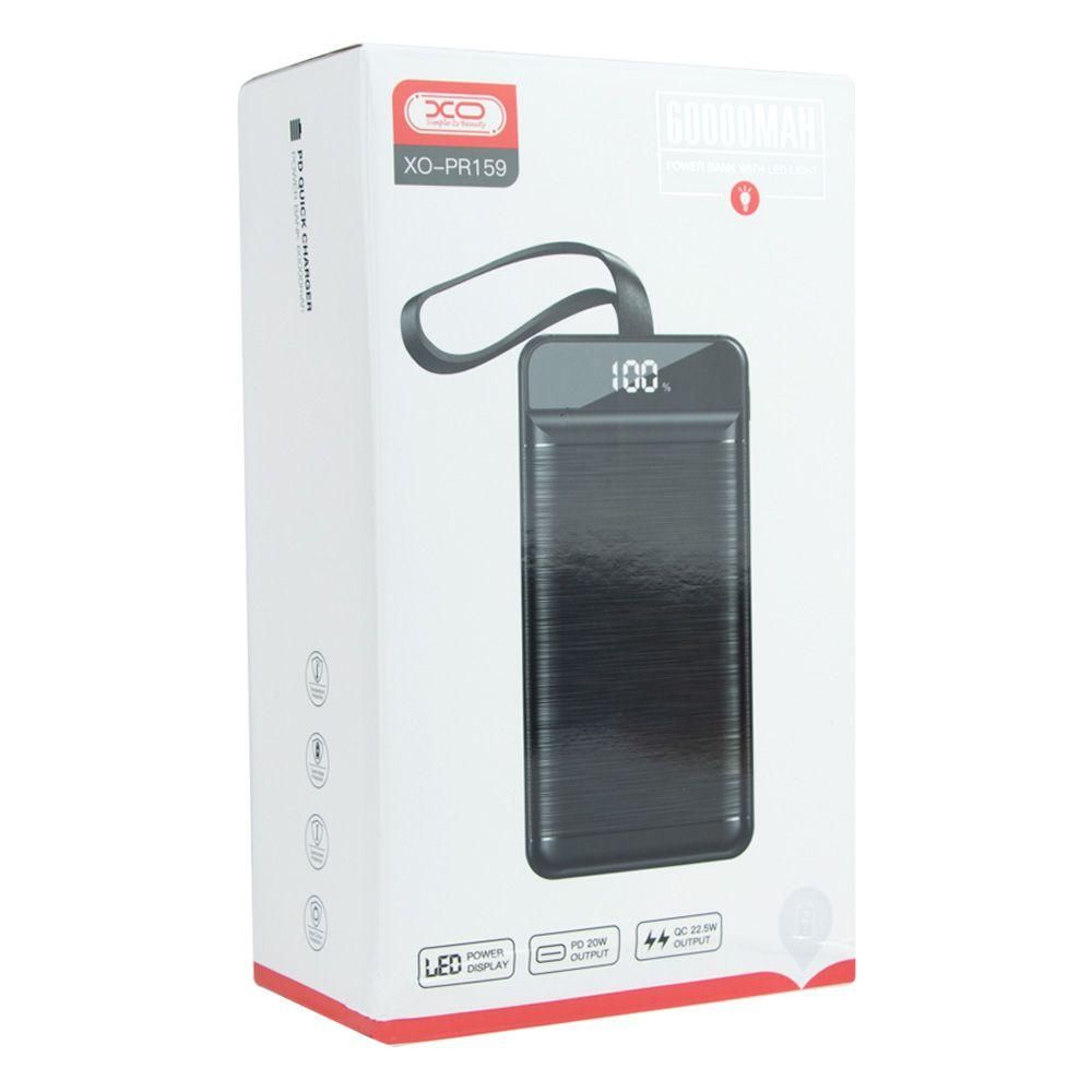 Power Bank XO PR159 QC22.5W PD20W digital display, with light, 60000 mAh Цвет Черный