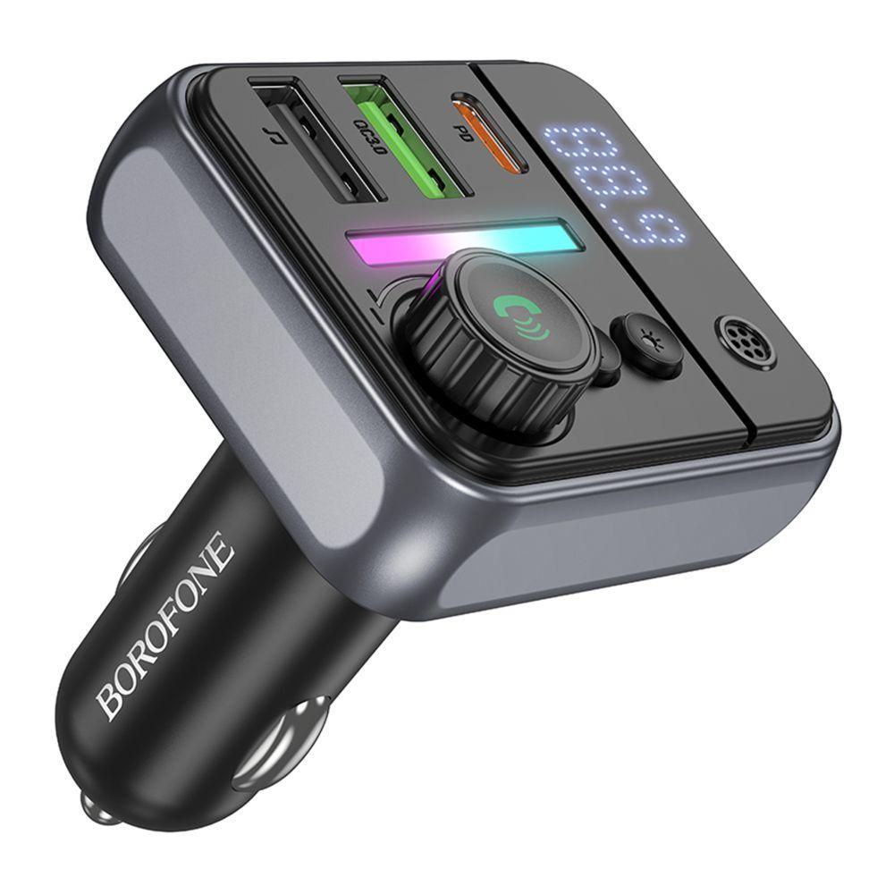 Модулятор Borofone BC50 – это высокотехнологичное устройство, которое расширит мультимедийные возможности автомобиля и дополнит его функцией быстрой зарядки портативных гаджетов. В сочетании со штатным FM-приемником, он позволит принимать и совершать звонки со смартфона, а также воспроизводить с него или USB флешки музыку без каких-либо проводов. Особенности и преимущества модулятора Borofone BC50: • Изысканный двухцветный дизайн с практичными обтекаемыми деталями и атмосферной RGB LED подсветкой. • Компактные размеры (79 × 46 × 52мм) - не будет мешать и отвлекать внимание. • Корпус из прочного ABS пластика и качественные электронные компоненты. • Металлические боковые и нижний контакты, которые обеспечивают плотную посадку в гнездо прикуривателя и стабильную подачу питания. • Большие кнопки, функциональный регулятор и LED дисплей, который отображает FM-частоту и напряжение. • Современный модуль Bluetooth V5.4 для стабильного беспроводного соединения со смартфоном. • Разъем USB (A1) с напряжением на выходе 5V при силе тока 0.5A для проигрывания музыкальных файлов с USB флешки объемом до 32Gb. • Разъемы USB (A2) и Type-C для одновременной быстрой зарядки портативных гаджетов. • Поддержка быстрой зарядки по протоколам PD, QC3.0, FCP, AFC с максимальной мощностью 20W на выходе разъема Type-C. • Поддержка быстрой зарядки по протоколам QC3.0, FCP, AFC с максимальной мощностью 18W на выходе разъема USB (A2). • Общая максимальная мощность на выходе разъемов USB (A2) и Type-C: 38W (18W+20W). Borofone BC50 - это больше, чем просто FM-трансмиттер. Это многофункциональное устройство, которое предлагает высокую скорость зарядки, стабильное Bluetooth-соединение и превосходное качество звука.