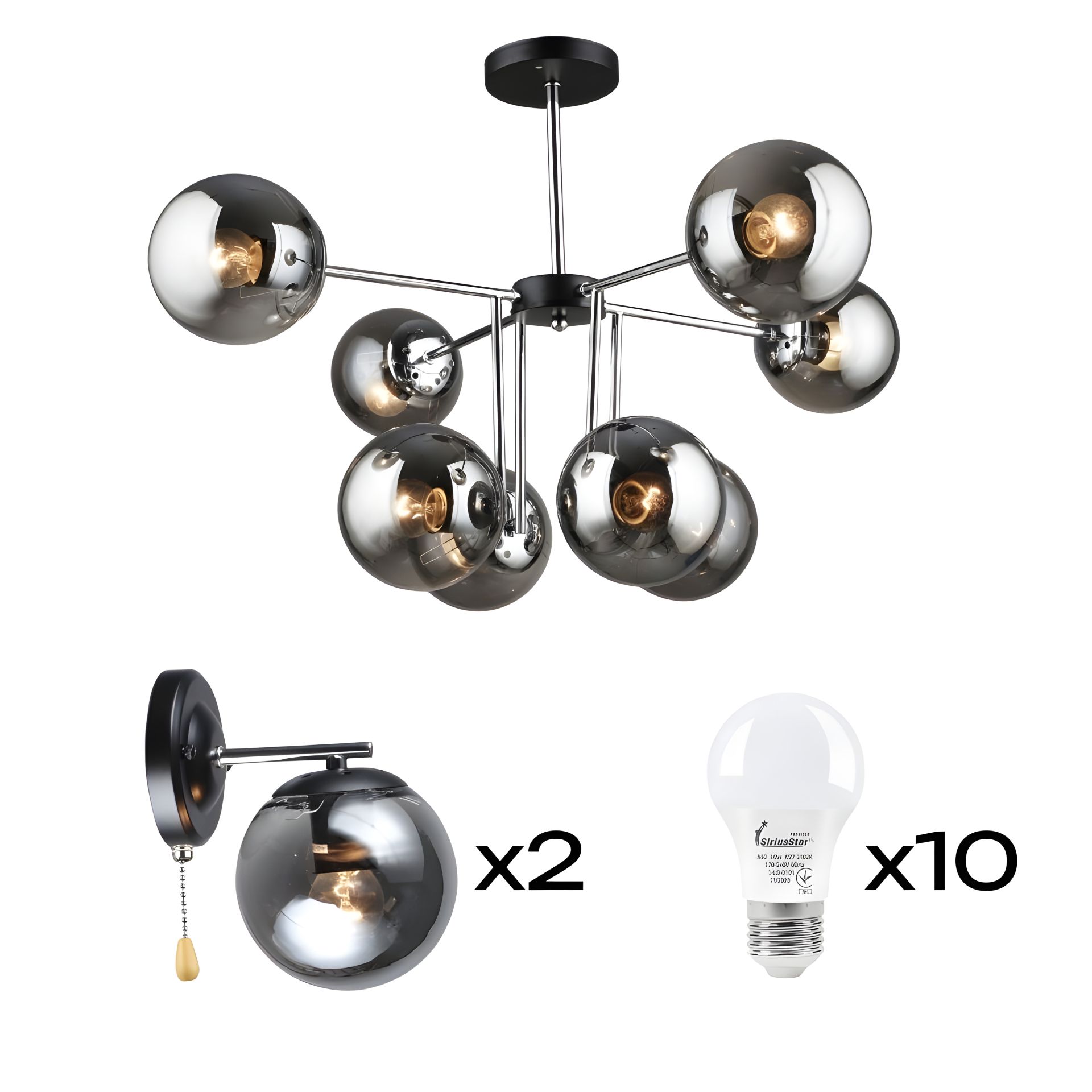 Этот элегантный комплект освещения от VALESO — идеальное сочетание величественного дизайна и современной функциональности. Набор включает люстру K2307/8 и два настенных бра K2307/1W, которые вместе создают гармоничную систему освещения для вашего интерьера. Контраст глубокого черного цвета с блестящими хромовыми акцентами и плафонами из дымчатого стекла придают комплекту особый шарм, который отлично дополнит современные интерьеры, лофт-пространства или помещения в стиле минимализм.