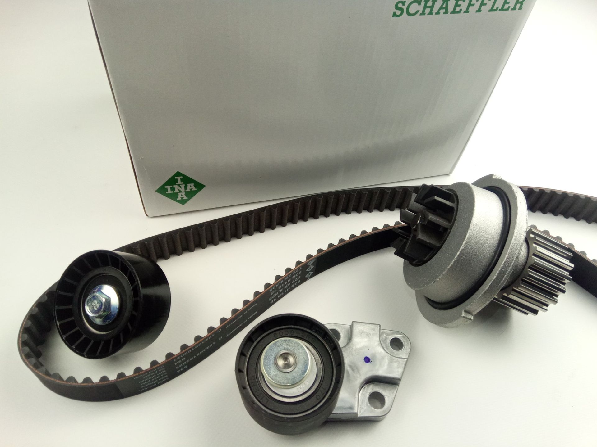 Ремень ГРМ+ролики Lacetti 1.6, + помпа (96814098), INA (530033230)