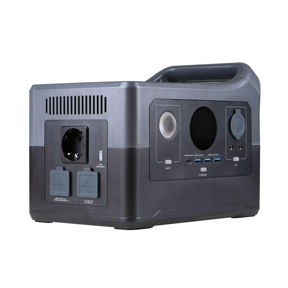 Power Station 3E E7 700W станет отличным выбором для зарядки портативных гаджетов и подключения к сети различной электротехники во время частых отключений электричества, отдыха на природе и проведения мероприятий на открытом воздухе. Устройство имеет небольшие размеры и вес, поэтому не займет много места, например в багажнике авто, оснащено массивной ручкой для удобной транспортировки. Корпус станции надежно собран, изготовлен из прочного, огнестойкого пластика, дополнен противоскользящими накладками и панелями с перфорацией, которые в сочетании с встроенным кулером обеспечивают эффективное охлаждение. Номинальная емкость ее встроенного Li-ion NMC аккумулятора составляет 140000mAh или 504Wh, количество циклов его заряда - 800. Благодаря поддержке технологии быстрой зарядки он зарядится на 80% всего за 1 час. На ее центральной панели находятся: круглый LED дисплей; фонарь с кнопкой для его управления; кнопка включения; разъемы для зарядки гаджетов по протоколам PD и QC - Type-C (60W), USB (24W), 2xUSB (13W); интерфейсы с отдельным включателем для зарядки и подключения к сети автомобильных и других устройств - 2xDC 5521 (13.6V/3A) и разъем прикуривателя (13.6V, 240W max). Фонарь может работать в нескольких режимах, а дисплей отображает уровень заряда, значение входящей и исходящей мощности, оставшееся время работы при текущей нагрузке и используемые разъемы. На верхней панели имеется площадка для беспроводной зарядки гаджетов, а в одном из торцов расположены 3 интерфейса с кнопкой для их включения, а именно: розетка с мощностью на выходе 700W и 2 разъема для зарядки стации. Устройство может заряжаться от сетей с переменным током, частотой 50-60Hz и напряжением 180-245V, а также от гнезда прикуривателя авто или солнечной панели с максимальной входящей мощностью 420W.