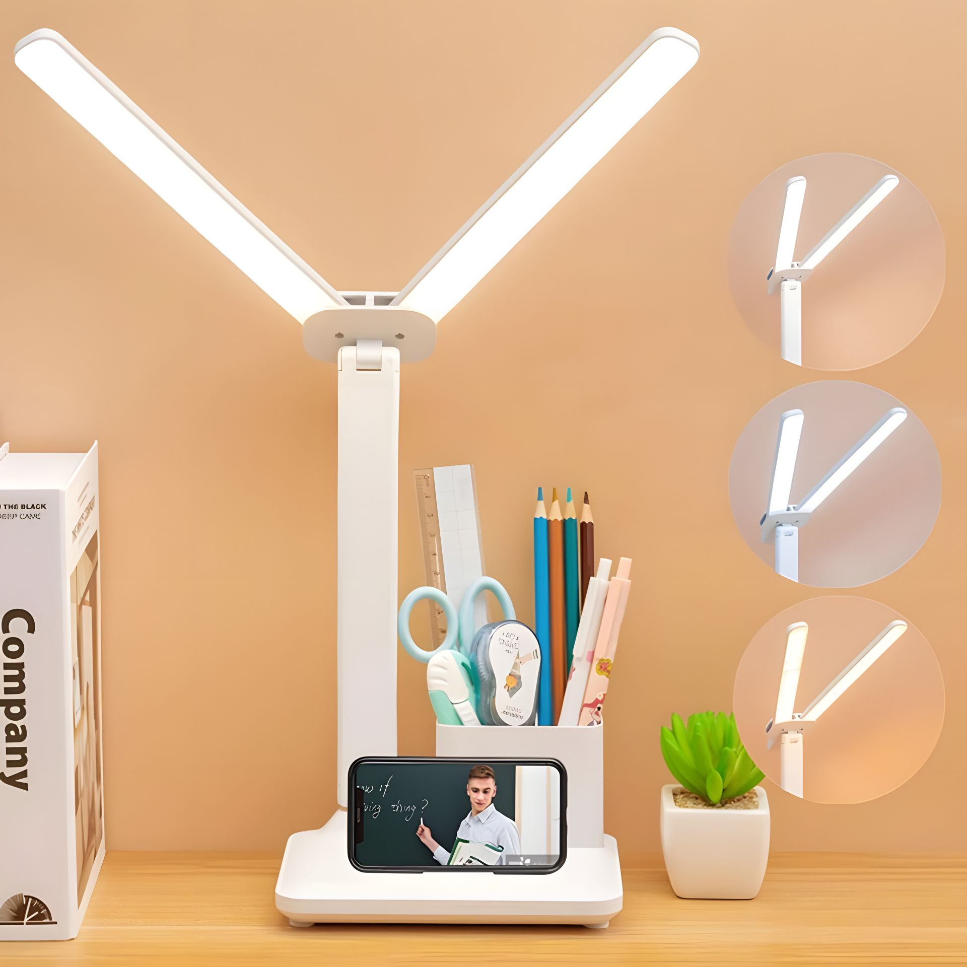 Создайте идеально организованное и освещенное рабочее пространство с аккумуляторным настольным светильником VALESO 1962. Эта модель в белом цвете является настоящим многофункциональным решением: она не только обеспечивает мощный свет, но и оснащена удобным держателем для ручки (органайзером) для порядка на вашем столе. Светильник также складывается, что упрощает его хранение и транспортировку.