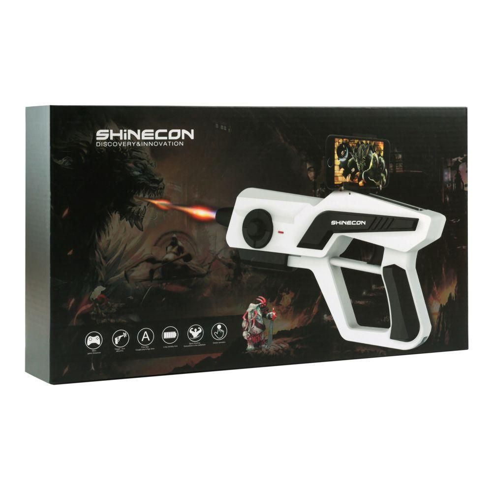 Геймпад-пистолет SK-AG13 — это уникальное устройство, которое превратит смартфон в мощное игровое оружие. Он разработан специально для любителей мобильных шутеров с динамичным геймплеем — обеспечения совершенно новых ощущений от игрового процесса с повышенным уровнем реализма. Особенности и преимущества геймпада-пистолета SK-AG13: • Оригинальный дизайн, реализованный в виде пистолета с реалистичными, практичными деталями и стильной расцветкой. • Оптимальный вес (около 325г) и эргономичная рукоять для удобного хвата и комфортного длительного использования. • Надежные электронные компоненты и качественная сборка корпусных деталей из ударостойкого ABS пластика. • Складной держатель с достаточно тугим раздвижным механизмом, совместимым со смартфонами с диагональю 4.7″–6″. • Рычаг–слайдер для перезарядки, спусковой курок и другие, удобно расположенные кнопки для управления игровым процессом. • Модуль Bluetooth V4.0, который обеспечивает стабильное соединение со смартфоном без каких–либо проводов. • LED индикатор для контроля состояния и длительное время работы от двух сменных батареек стандарта AAA. • Совместимость с огромным количеством игр на Android и iOS, список которых доступен в приложении по QR коду. Геймпад-пистолет Shinecon SC-AG13 станет идеальным выбором для тех, кто хочет вывести мобильный гейминг на новый уровень, сочетая удобство, точность и эффект полного погружения.