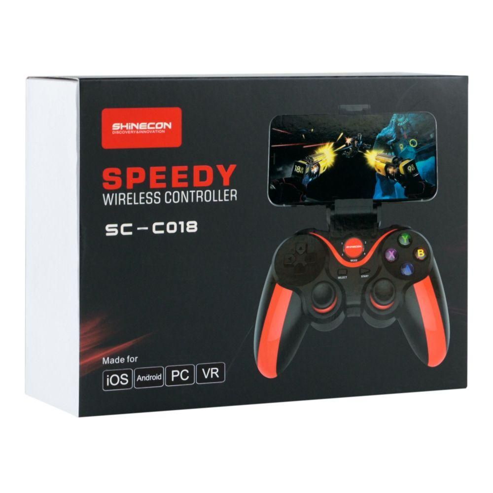 Геймпад–контролер SC–C018 — это современное беспроводное устройство, созданное для удобной и точной игры на различных платформах. Благодаря эргономичному дизайну, широким возможностям настройки и стабильному Bluetooth–соединению, он обеспечивает максимальный комфорт и контроль в играх любого жанра. Особенности и преимущества геймпада–контролера SC–C018: • Изысканный дизайн с оригинальными разноцветными экшен–кнопками и глянцевыми, яркими вставками. • Эргономичная форма, которая обеспечивает удобный хват двумя руками с минимальной нагрузкой при длительном использовании. • Приятная на ощупь матовая поверхность, которая предотвращает выскальзывание из рук. • Качественные электронные компоненты и надежная сборка корпусных деталей из ABS пластика и поликарбоната. • 14 стандартно расположенных кнопок: 2 джойстика с плавным ходом на все 360°, старт, выбор, крестовина, функциональная кнопка, L1/L2 и R1/R2, 4 экшен–кнопки (X, Y, A, B). • Современный модуль Bluetooth, который обеспечивает стабильное беспроводное соединение с быстрым откликом, без задержек. • Совместимость с устройствами под управлением Android и iOS, компьютерами и игровыми консолями с поддержкой подключения контроллеров по Bluetooth. • Поддержка функций пульта дистанционного управления и беспроводной мыши. • До 10 часов работы в активном режиме от встроенного аккумулятора емкостью 400mAh. • Разъем Micro–USB для зарядки с помощью комплектного USB кабеля. • Съемный держатель с универсальным раздвижным механизмом для надежной фиксации смартфона с удобным обзором экрана. Геймпад SC–C018 создан для тех, кто хочет получать максимум удовольствия от игры. Стильный, функциональный и удобный — он обеспечит полный контроль и безупречную точность в каждом движении.
