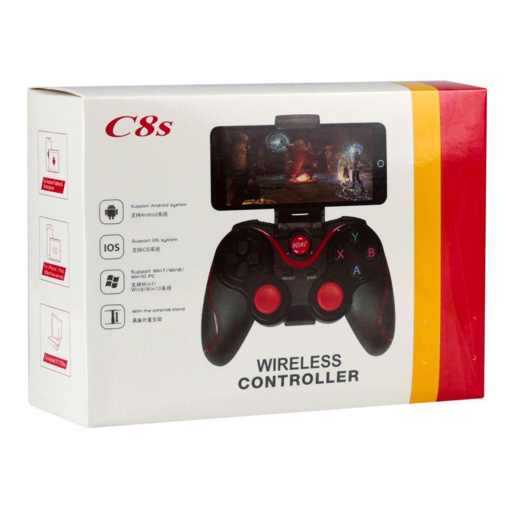 Геймпад–контролер C8S + держатель — это универсальное беспроводное устройство, предназначенное для комфортной игры на различных платформах. Он обеспечивает точное управление и совместимость с широким спектром устройств, включая смартфоны, планшеты, смарт телевизоры и настольные ПК. Особенности и преимущества геймпада–контролера C8S: • Современный дизайн с контрастными элементами управления и яркими линиями с плавными изгибами. • Эргономичная форма с оптимальными размерами, которая обеспечивает максимально удобный хват двумя руками. • Текстурированные накладки и Soft–touch покрытие — обеспечивают приятные тактильные ощущения, предотвращая выскальзывание из рук. • Качественные электронные компоненты и надежная сборка корпусных деталей из прочного ABS пластика и поликарбоната. • Съемный держатель с универсальным раздвижным механизмом для надежной фиксации смартфона с удобным обзором экрана. • 14 кнопок: старт, выбор, 2 джойстика с плавным ходом на все 360°, крестовина, L1/L2 и R1/R2, мультифункциональная кнопка и 4 экшен–кнопки (X, Y, A, B). • 3 режима работы: стандартный (режим джойстика), мышь+медиа (управление курсором, навигацией и медиа–файлами), iCade (аркадные игры на iOS или эмуляторах). • Современный модуль Bluetooth, который обеспечивает стабильное беспроводное соединение с низкой задержкой. • Кроссплатформенная совместимость с поддержкой устройств под управлением Android, iOS и Windows. • Около 20 часов работы (зависит от интенсивности) от встроенного аккумулятора емкостью 400mAh. • Разъем Micro–USB для зарядки с помощью комплектного USB кабеля. Геймпад–контролер C8S станет надежным игровым инструментом, позволяя наслаждаться любимыми играми без ограничений. Универсальные режимы работы, эргономичный дизайн и стабильное соединение делают его отличным выбором для мобильного и ПК–гейминга.