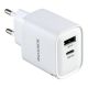 Сетевое зарядное устройство Borofone BA83A — это универсальный и практичный адаптер, разработанный для эффективной и абсолютно безопасной зарядки современных портативных гаджетов. Он привлекает внимание стильным техническим решением в виде LED–индикатора, отличается наличием сразу двух разных разъёмов и наиболее распространённых протоколов быстрой зарядки. Особенности и преимущества зарядного устройства Borofone BA83A: • Современный дизайн со стильными глянцевыми деталями, практичными скруглёнными рёбрами и технологичными решениями. • Небольшой вес (всего 68г) и компактные размеры (79×42×30мм) — обеспечивают удобное использование в любых условиях. • Корпус из надёжной комбинации огнестойкого поликарбоната и прочного ABS–пластика. • Сетевая вилка стандарта EU (тип C) со стойким к износу никелированным покрытием. • Широкий диапазон входного напряжения: 100–240V (AC, 50/60Hz, 0.5A макс). • Расположенный на боковой грани LED–индикатор для контроля подачи питания с приятным для глаз синим светом. • Современный разъём Type–C и разъем USB–A, общая максимальная мощность на выходе которых составляет 15W (5V/3A). • Максимальная мощность на выходе разъёма Type–C: 20W (5V/3A, 9V/2.22A, 12V/1.67A и 3.3–11V/1.8A для PPS). • Максимальная мощность на выходе разъёма USB–A: 18W (5V/3A, 9V/2A, 12V/1.5A). • Поддержка быстрой зарядки по протоколам PD, QC3.0, FCP, AFC через разъём Type–C и QC3.0, FCP, AFC через разъём USB–A. • Технология Smart ID — автоматическое определение необходимой мощности для каждого подключенного устройства. • Многоуровневая система защиты от перегрева, перегрузки, короткого замыкания и скачков напряжения. • Комплектуется надёжным кабелем Type–C — Type–C длиной 1м. Сетевое зарядное устройство Borofone BA83A станет удобным и безопасным решением для повседневной подзарядки смартфонов и других гаджетов.