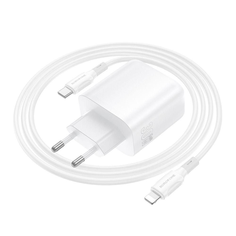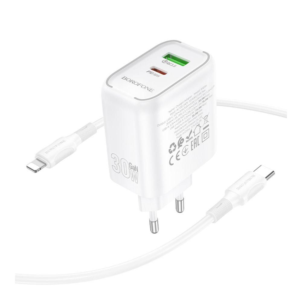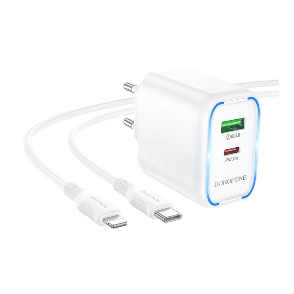 Сетевое Зарядное Устройство Borofone BA89A 1USB-C/1USB PD/QC 30W+Type-C to Lightning Цвет Белый