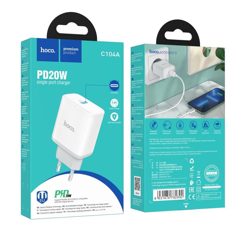 Сетевое Зарядное Устройство Hoco C104A Stage single port PD20W Цвет Белый