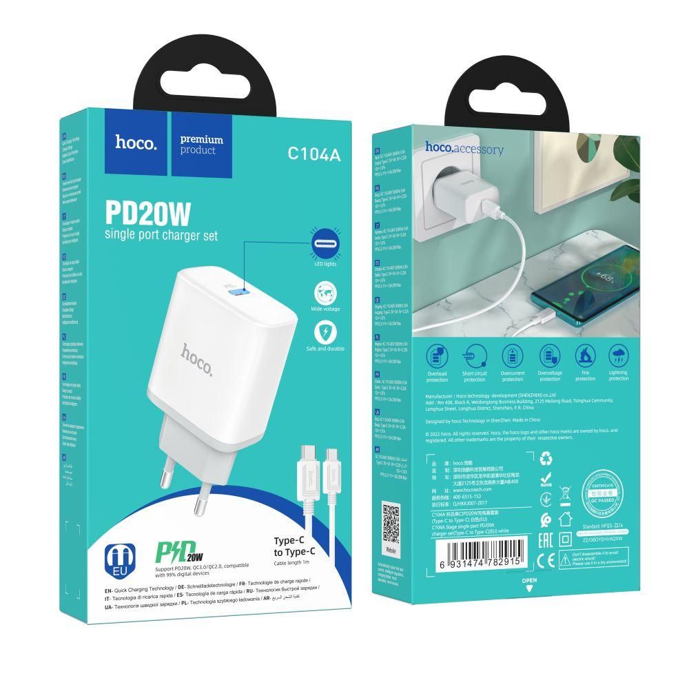 Сетевое Зарядное Устройство Hoco C104A Stage single port PD20W Type-C to Type-C Цвет Белый