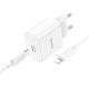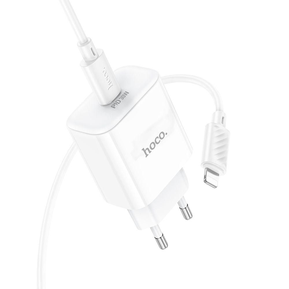 Сетевое Зарядное Устройство Hoco C76A Pro 1USB-C PD/QC 30W+Type-C to Lightning Цвет Белый