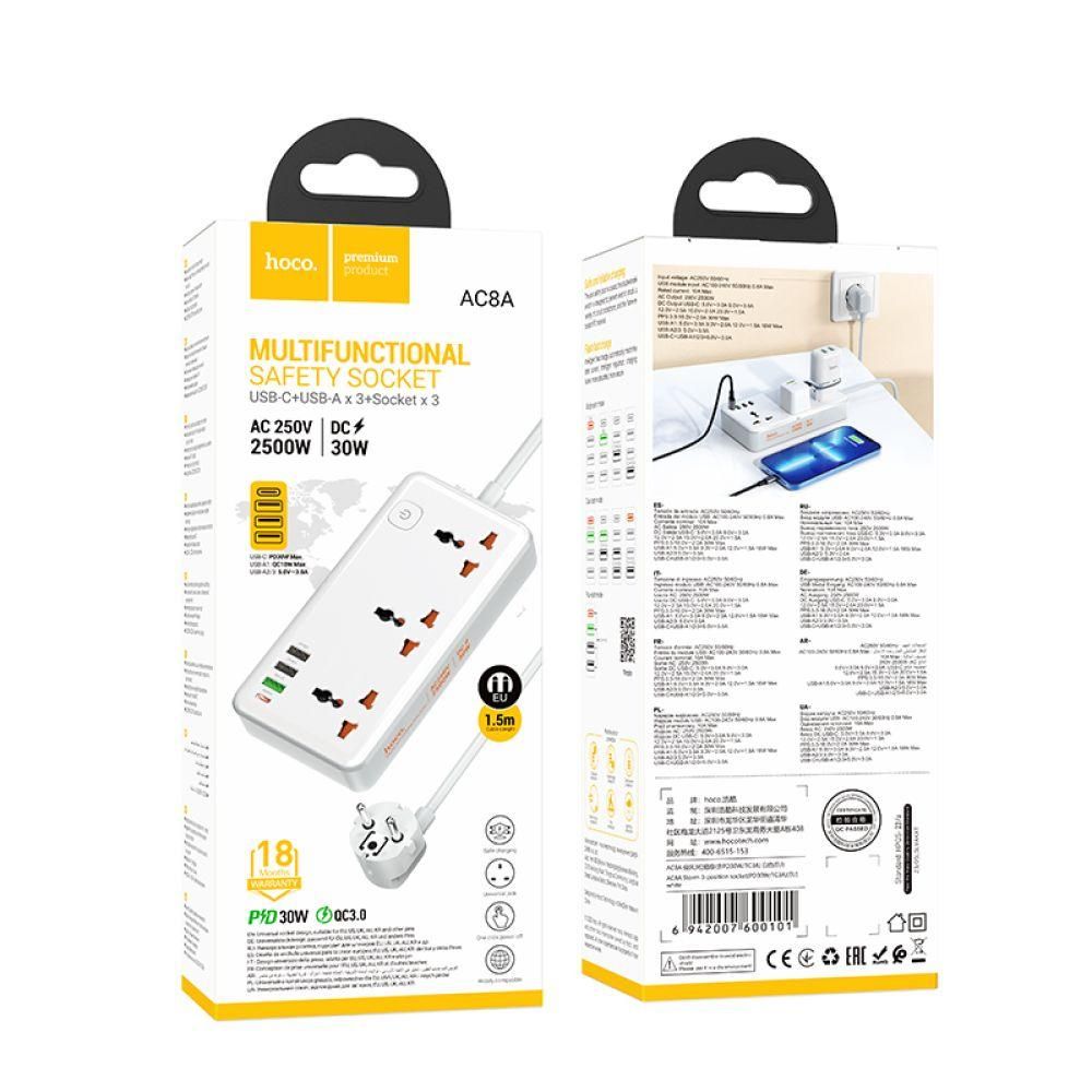 Сетевой Удлинитель Hoco AC8A PD30W/QC18W/1C3A 1.5m Цвет Белый