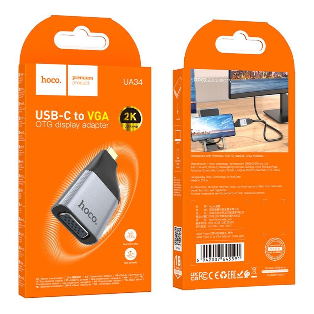 Переходник Hoco UA34 Type-C to VGA 2K 60HZ Цвет Серый