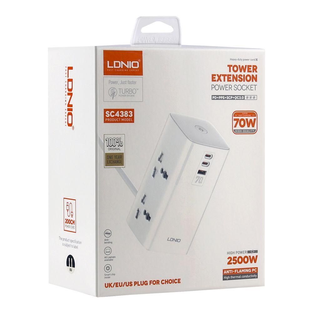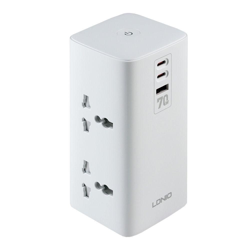 Сетевой удлинитель LDNIO SC4383 создан для организации пространства, где требуется одновременное питание бытовых приборов и подзарядка мобильных устройств. Его универсальная конструкция с USB–портами и стандартными розетками обеспечивает удобство и безопасность эксплуатации, позволяя экономить время и упрощать повседневное использование техники. Особенности и преимущества сетевого удлинителя LDNIO SC4383: • Уникальный дизайн с вертикальной стереоскопической конструкцией, которая упрощает организацию пространства. • Компактные размеры: 69×69×141мм, — не занимает много места, устанавливаясь на рабочем столе или прикроватной тумбе. • Встроенный кабель длиной 2м с прочной оплёткой из PVC, вилкой стандарта EU и тремя медными жилами с увеличенной на 33% толщиной. • Качественные электронные компоненты и надёжный корпус из прочного пластика с классом огнестойкости V0. • Практичная кнопка на верхней панели для управления питанием, способная выдерживать 15000 нажатий. • 4 универсальные сетевые розетки с достаточным расстоянием друг от друга для удобного подключения любых вилок. • Створки розеток для защиты от детей, рассчитанные на сопротивление нажатию до 75N. • Максимальная допустимая нагрузка: 2500W (100–250V AC, 50/60Hz, 10A макс.). • 2 современных разъёма Type–C (C1 и C2) и 1 разъём USB–A (A1), которые могут использоваться одновременно. • Максимальная мощность на выходе разъёмов Type–C1/C2: 70W (5V/3A, 9V/3A, 12V/3A, 15V/3A, 20V/3.5A, 3.3–12.6V/3A и 3.3–21V/3A для PPS). • Максимальная мощность на выходе разъёма USB–A: 30W (5V/3A, 9V/3A, 10V/2.25A (SCP), 15V/2A и 20V/1.5A). • Общая максимальная мощность на выходе комбинаций разъёмов: C1+C2=50W+20W; C1+A1=50W+18W. • Поддержка быстрой зарядки по протоколам PD2.0/3.0, QC3.0/2.0, AFC, FCP, SCP и некоторым другим. • Многоуровневая система защиты от перегрева, перегрузки, короткого замыкания и скачков напряжения. Сетевой удлинитель LDNIO SC4383 станет универсальным решением для дома и офиса, объединяя розетки и современные порты быстрой зарядки в одном корпусе.