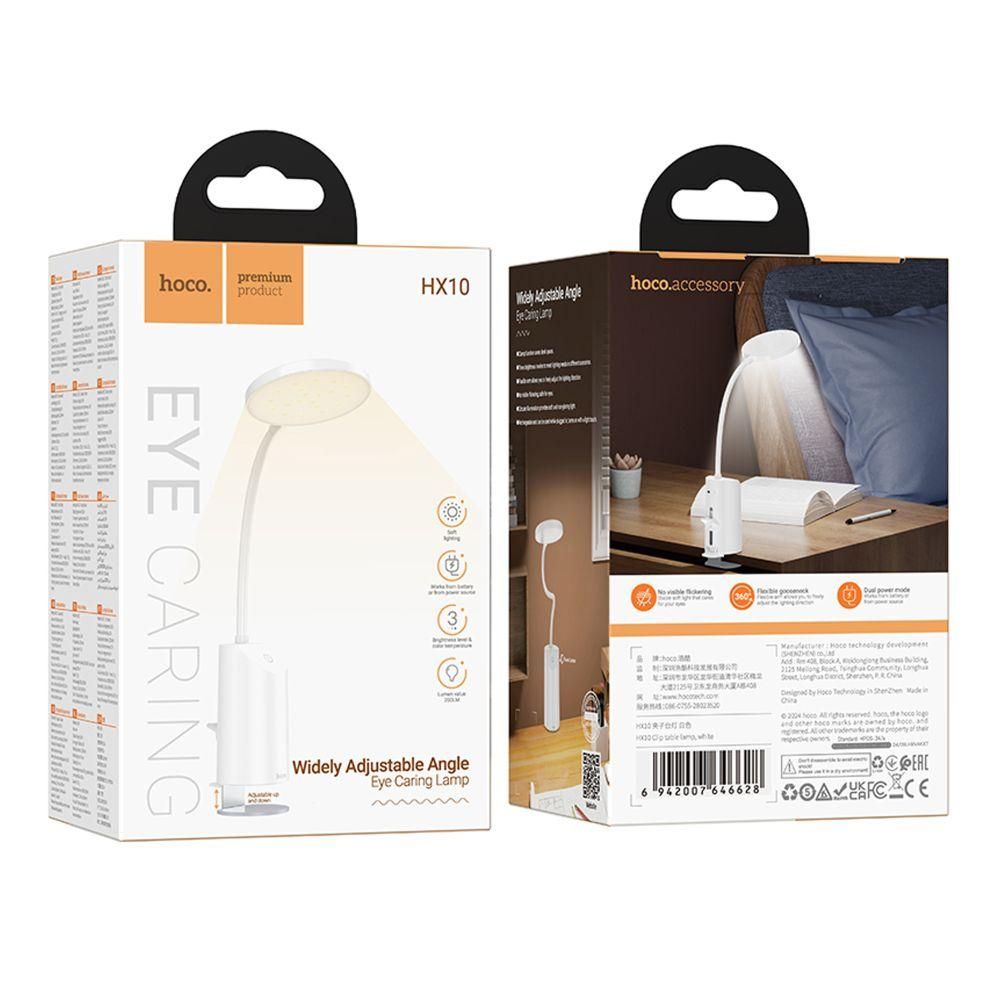 Настольная лампа Hoco HX10 — это современное, практичное устройство, разработанное с акцентом на мобильность и эргономику. Детально продуманная конструкция с гибкой ножкой, настраиваемый свет и независимое питание позволяют использовать её для работы или отдыха в самых разнообразных условиях — от стола до изголовья кровати. Особенности и преимущества настольной лампы Hoco HX10: • Современный дизайн, выполненный со стильными округлыми деталями, которые лаконично дополняют друг друга. • Оптимальные размеры: 120×62×450мм, — не мешает и не занимает много места, обеспечивая удобное использование. • Высококачественные электронные компоненты и надёжная сборка корпусных деталей из ударостойкого ABS–пластика. • Достаточно длинная гибкая ножка, которая может изгибаться в любую форму и сохранять её под нагрузкой. • Основание с тугим зажимом–клипсой для установки на горизонтальную поверхность или крепления, например, на краю стола или полки. • Круглая световая панель с качественным диффузором, который равномерно рассеивает свет с плавным заполнением пространства. • Современные светодиоды с общей мощностью 2W, которые излучают яркий, абсолютно безопасный для глаз свет. • Цветовая температура 3000K–5000K, индекс цветопередачи более 80Ra и сила светового потока 200Lm. • Механическая кнопка для включения и сенсорная панель для включения с выбором режима работы и 1 из 3 режимов яркости. • 3–5 часов работы от встроенного аккумулятора ёмкостью 1200mAh. • Современный разъём Type–C для зарядки с помощью комплектного USB кабеля. Hoco HX10 — это компактная и мобильная лампа с гибкой конструкцией и автономной работой, которая идеально подойдёт для любого сценария освещения.