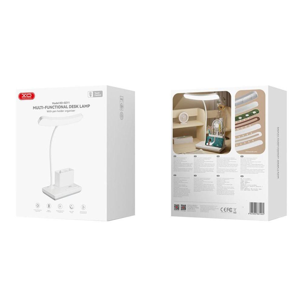 Лампа настольная XO OZ11 — это стильное и практичное устройство, которое не только освещает пространство, но и выполняет роль удобного органайзера. Благодаря оригинальному сочетанию современных технологий и детально продуманной конструкции, она поможет создать уют для отдыха и продуктивную атмосферу для работы. Особенности и преимущества настольной лампы XO OZ11: • Стильный и современный дизайн, который гармонично впишется в любой интерьер. • Оптимальные размеры: 180×225×410мм — идеальный баланс между компактностью и практичностью для комфортного использования. • Качественные электронные компоненты и надежная сборка корпусных деталей из прочного ABS пластика полипропилена. • Достаточно массивное основание, которое гарантирует устойчивость на любой горизонтальной поверхности. • Вместительный органайзер с 3 отделениями для хранения канцелярских принадлежностей и других мелких предметов. • Ночник с практичной LED панелью, которая может использоваться в качестве ограничителя для удобного расположения смартфона под углом. • Гибкая ножка для удобной настройки поворота и угла наклона — направления свет в нужном направлении. • Осветительный элемент с оригинальной формой и усовершенствованной конструкцией, которая обеспечивает равномерное рассеивание света. • Высококачественные светодиоды с увеличенным ресурсом работы и безопасным, приятным для глаз светом. • Максимальная мощность 4W, индекс цветопередачи более 80Ra и цветовая температура 3000K–4500K–6500K. • Сенсорное управление с отдельным включением ночника и основного света с выбором 1 из 3 режимов работы. • До 9 часов работы (зависит от режима) от встроенного аккумулятора емкостью 2400mAh. • Механический переключатель для включения и разъем Type–C для зарядки с помощью комплектного USB кабеля. Настольная лампа XO OZ11 станет надежным помощником в повседневной жизни, объединяя в себе функциональность, удобство и элегантность. С ее помощью можно легко организовать рабочее место и наслаждаться качественным освещением в любое время суток.