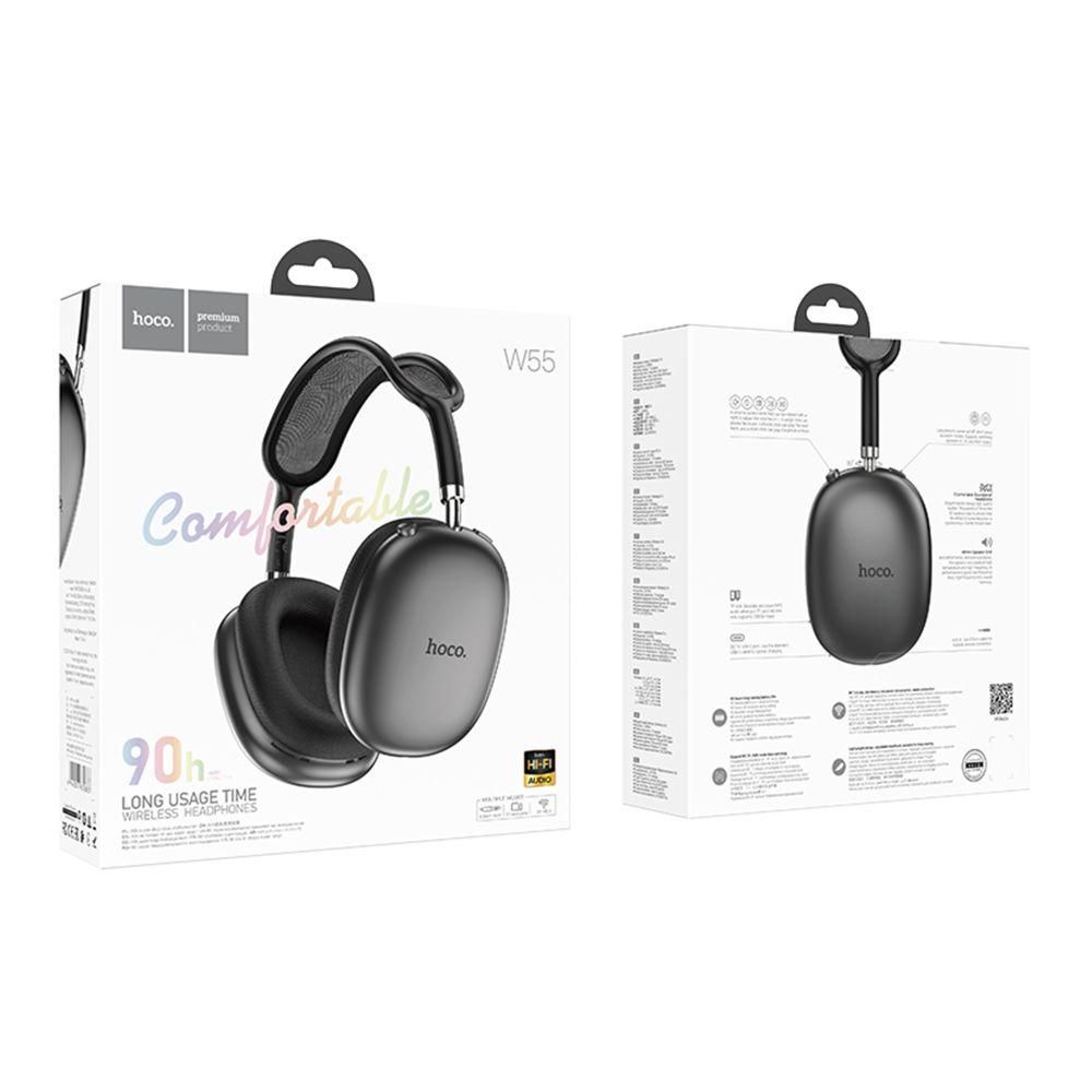 Блютуз стерео гарнитура Hoco W55 — это универсальные наушники с насыщенным звуком и продуманной конструкцией для комфортного ношения в течение всего дня. Она реализована в премиальном дизайне из высококачественных материалов и компонентов, отличается широким функционалом и впечатляет длительным временем автономной работы. Особенности и преимущества блютуз стерео гарнитуры Hoco W55: • Изысканный дизайн с привлекательной расцветкой, никелированными деталями и обтекаемой формой ушных элементов. • Оптимальные размеры (20×19×8см) с небольшим весом (198г) — создают минимальную нагрузку при длительном использовании. • Надёжные электронные компоненты и качественная сборка корпусных деталей из ударостойкого ABS–пластика. • Поворотная конструкция ушных элементов для обеспечения удобного хранения и безопасной переноски. • Мягкие, съёмные амбушюры на магнитах, обтянутые приятным на ощупь, стойким к износу текстильным материалом. • Эргономичное оголовье с изогнутой накладкой, сетчатая структура которой значительно снижает давление на макушку головы. • Современные динамики, которые воспроизводят детализированный звук в Hi–Fi качестве и широком диапазоне частот. • Модуль Bluetooth V5.4 (JL7006F4) для стабильного беспроводного соединения с минимальной задержкой передачи звука. • Чувствительный микрофон, практичные кнопки управления и слот для карты памяти TF. • До 90 часов работы в активном режиме от встроенного аккумулятора ёмкостью 800mAh. • Разъём AUX для проводного подключения к источнику звука и разъём Type–C для зарядки от 0 до 100% за 2 часа. Практичная конструкция, современные драйверы и широкий набор функций делают наушники Hoco W55 отличным выбором для пользователей с высокими требованиями к комфорту и качеству звука.