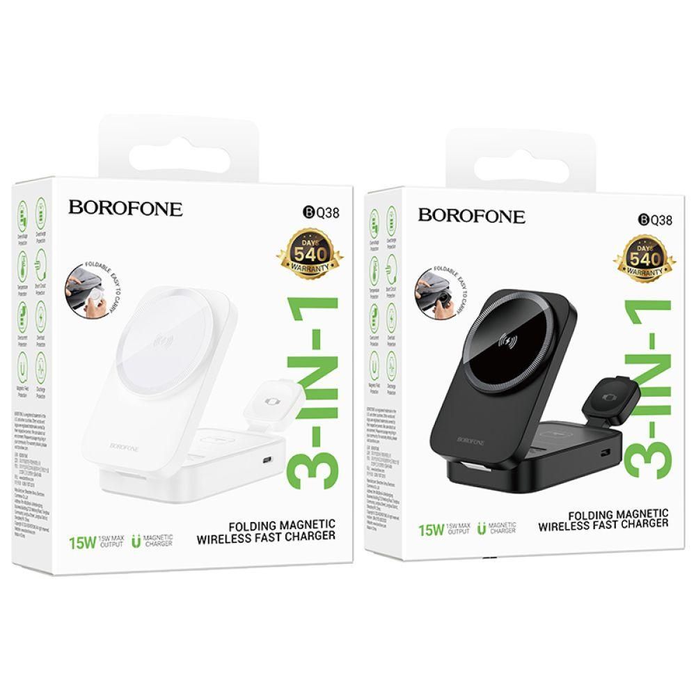 Беспроводное зарядное устройство Borofone BQ38 объединяет в себе функциональность, стиль и универсальность, обеспечивая комфортную зарядку современных гаджетов. Несмотря на свои компактные размеры, оно оснащено тремя площадками для эффективной и одновременной беспроводной зарядки совместимых смартфонов, зарядных кейсов TWS–наушников и iWatch. Особенности и преимущества зарядного устройства Borofone BQ38: • Оригинальный дизайн со стильными декоративными и глянцевыми деталями, которые лаконично сочетаются с матовой поверхностью. • Небольшой вес (155г) и компактные размеры (92×60×29мм) — не занимает много места на рабочем столе и поместится даже в кармане. • Качественные электронные компоненты и надёжная сборка корпусных деталей из прочного ABS–пластика и поликарбоната. • Откидная верхняя панель с функцией магнитного держателя для беспроводной зарядки iPhone 12 и новее, а также других совместимых смартфонов. • Широкая вариативность выходной мощности для зарядки смартфонов: 5, 7.5, 10 и 15W. • Складная площадка для беспроводной зарядки Apple Watch 1–9, SE/SE2, Ultra/Ultra2 с максимальной мощностью 2.5W. • Площадка под откидной верхней панелью для зарядки зарядного кейса TWS–наушников с максимальной мощностью 5W. • Поддержка одновременной зарядки трёх гаджетов с общей максимальной мощностью на выходе 15W. • LED–индикатор для контроля состояния и разъём Type–C для подключения к источнику питания с поддержкой технологии PD (5V/3A, 9V/3A, 12V/1.5A). • Многоуровневая система защиты от перегрева, перегрузки, скачков напряжения и короткого замыкания. Функциональность, удобство и безопасность делают BQ38 универсальным аксессуаром для пользователей, которым важно экономить пространство и время при зарядке гаджетов.