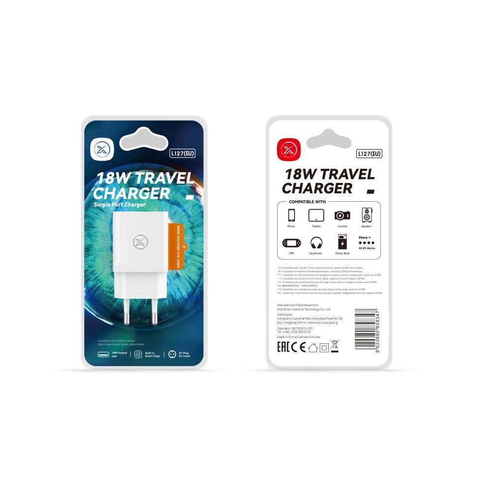 Сетевое Зарядное Устройство XO L127 1USB QC 18W New Logo Цвет Белый
