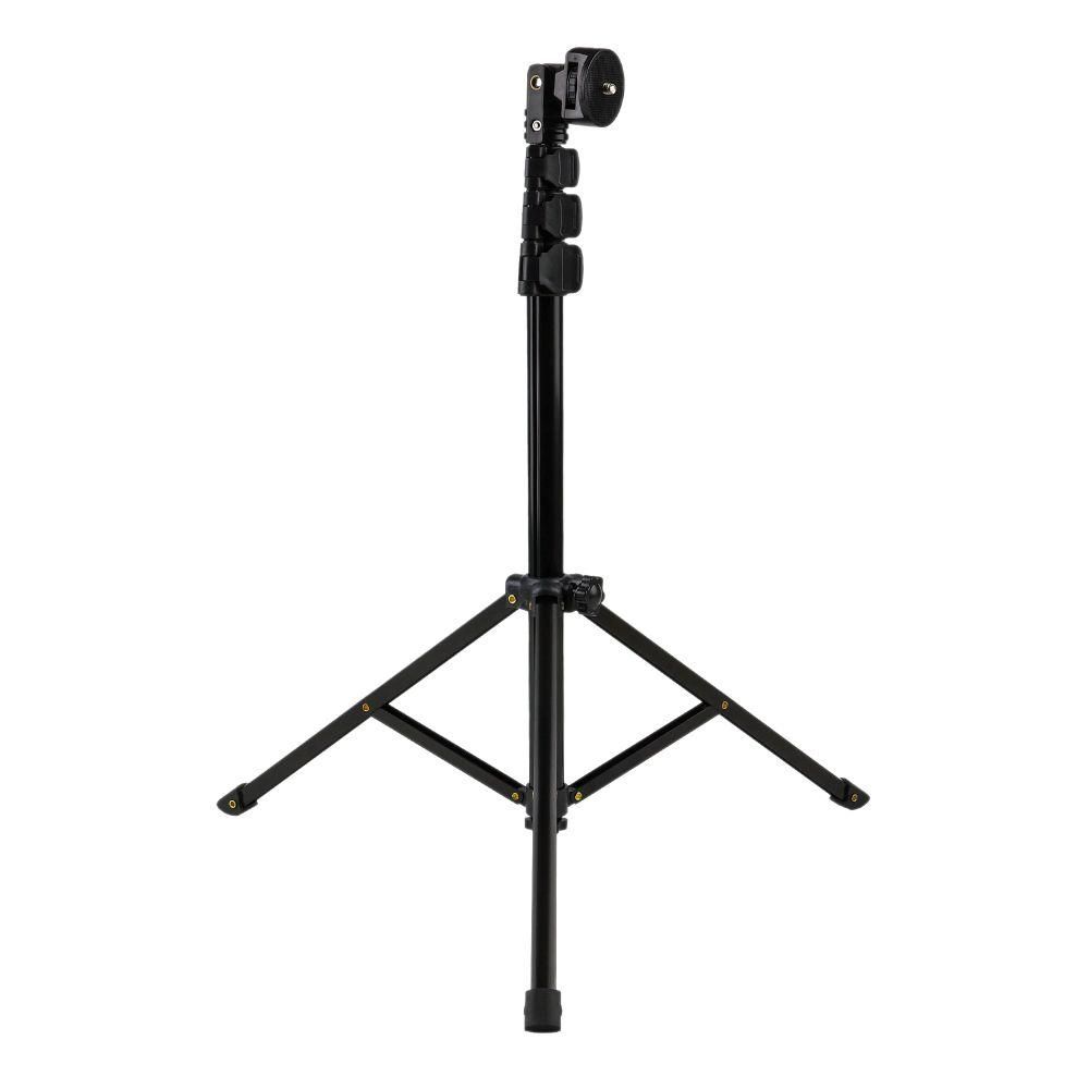 Штатив с поворотной головой и клипсами поможет устойчиво зафиксировать на необходимой высоте и под нужным углом держатель для смартфона, профессиональный свет, фотокамеру и другое совместимое оборудование. Данный аксессуар выделяется исключительной надежностью, способность гарантировать абсолютную безопасность закрепленных устройств. Благодаря достаточно компактным размерам, небольшому весу и практичной сумке, его с удобством можно брать с собой, например, на выездные фотосессии. Штатив изготовлен из легкого, но необычайно прочного алюминиевого сплава, некоторые его детали выполнены из стойкого к нагрузкам пластика, а шарнирные соединения - из металла. Его 3 опоры усилены креплениями, которые предотвращают их расхождение, имеют накладки на концах для обеспечения устойчивости и защиты поверхности от повреждений. В верхней части треноги имеется болтовой фиксатор для дополнительной безопасности. Штатив имеет телескопическое строение, каждая из его 4 секций оснащена индивидуальной клипсой, предотвращающей произвольное складывание. Головка устройства предназначена для установки различного оборудования, совместимого со стандартным резьбовым соединением 1/4". Ее конструкция позволяет регулировать наклон в диапазоне от 0 до 180° и фиксировать выбранное положение болтовым крепежом. Высота штатива в сложенном виде равна 47см. Его минимальная высота с разложенной треногой составит около 49см, а с полностью разложенными секциями - 160см.