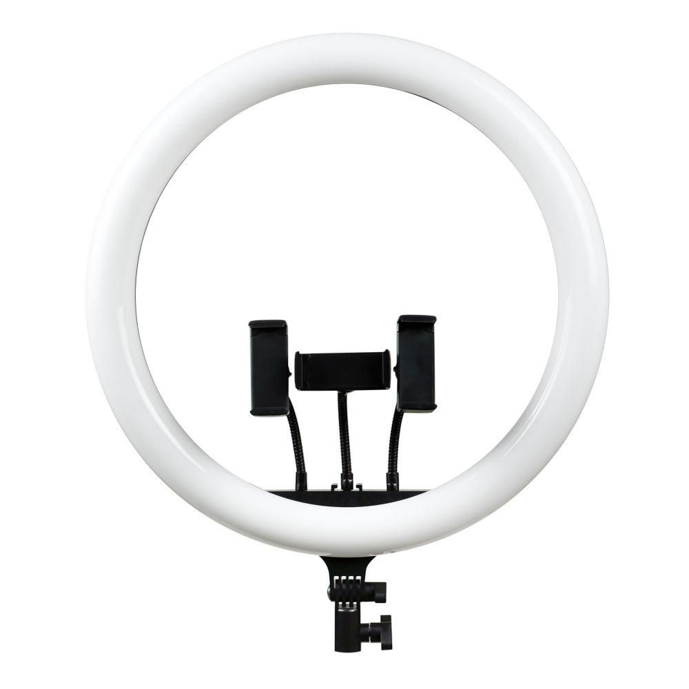 Лампа RGB MJ36 36cm Original Remote — это функциональный источник света с практичной формой кольца и широкими возможностями цветовой настройки. Благодаря равномерному освещению по всей площади и большому количеству светодиодов, включая RGB, она идеально подойдёт для съёмки видео, проведения прямых эфиров, нанесения макияжа или создания уютной световой атмосферы в интерьере. Особенности и преимущества лампы RGB MJ36 36cm Original Remote: • Практичная форма кольца диаметром 36см, которая позволяет охватывать широкую зону и создавать сбалансированное освещение. • Качественные электронные компоненты и надёжная сборка корпусных деталей из комбинации поликарбоната и ABS–пластика. • Обтекаемая форма диффузора, который равномерно рассеивает свет с широким углом. • Крепление с шарнирным соединением и фиксаторами для надёжной установки на штатив с возможностью настройки угла наклона. • Резьбовые соединения для трёх держателей для смартфона, которые входят в комплект. • Гибкая ножка, шаровое соединение и раздвижной механизм держателей для фиксации и настройки удобного положения смартфонов шириной до 95мм. • 336 светодиодов (268 белых и 68 RGB), которые отличаются увеличенным ресурсом работы и излучают яркий, безопасный для глаз свет. • Максимальная мощность 25W, диапазон цветовой температуры 3200K-5600K, высокий индекс цветопередачи и световой поток 1200LM. • 3 режима цветовой температуры (холодный, тёплый, смешанный) и широкая вариативность RGB–режимов, включая динамичные градиентные эффекты. • Встроенный кабель с разъёмом USB–A для подключения к источнику питания. • Встроенный в кабель блок управления с кнопками для включения, выбора режима и регулировки яркости. • Дополнительно комплектуется пультом ДУ для максимально удобного включения и настройки освещения. Кольцевая лампа RGB MJ36 36cm Original Remote — это надёжный помощник в создании правильного и эффектного освещения для съёмки и других задач.