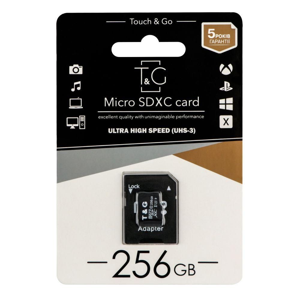 Карта Памяти T&G MicroSDXC 256gb UHS-3 10 Class & Adapter Цвет Черный