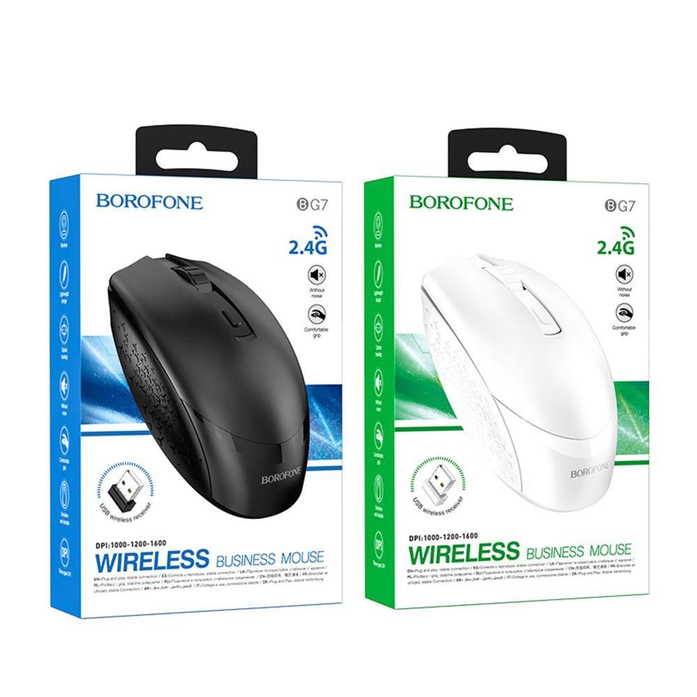 Беспроводная мышь Borofone BG7 – это современное, эргономичное решения для максимально комфортной работы и развлечений. Она обеспечит эффективное выполнение всех необходимых действий в любых условиях: дома, в офисе или во время поездок. Особенности и преимущества беспроводной мыши Borofone BG7: • Оригинальный дизайн с текстурированными элементами и изысканными глянцевыми вставками. • Небольшой вес (60г) и компактные размеры (108×61×39мм) – с легкостью поместится в сумке вместе с ноутбуком и даже в кармане. • Эргономичная форма – обеспечивает удобный хват любым способом и любой рукой. • Надежный корпус из прочного ABS пластика и качественные электронные компоненты. • Износостойкие глайды на нижней панели и накладка со стильным текстурированным узором на левой грани. • 4 кнопки: ребристое колесо прокрутки, 2 стандартные кнопки с необычайно тихим кликом и кнопка смены DPI. • Увеличенный ресурс элементов управления: 3 миллионов нажатий для основных кнопок и 200 тысяч вращений для колеса прокрутки. • Основная схема Han Tianxi с чипом MX8650 и оптическим сенсором с тремя режимами работы – с разрешением 1000, 1200 и 1600DPI. • Стабильное беспроводное соединение в радиусе до 10м – осуществляется на частоте 2.4GHz с помощью миниатюрного USB адаптера. • Длительное время работы от одной сменной батарейки стандарта AA. • Слот для хранения комплектного USB адаптера под съемной крышкой батарейного отсека на нижней панели. • Поддержка технологии Plug and Play и совместимость с большинством ОС. Беспроводная мышь Borofone BG7 – универсальный инструмент, который станет идеальным дополнением как к ноутбуку, так и к настольному ПК. Она справится с любыми задачами, будь то работа с документами, игры или серфинг в интернете.