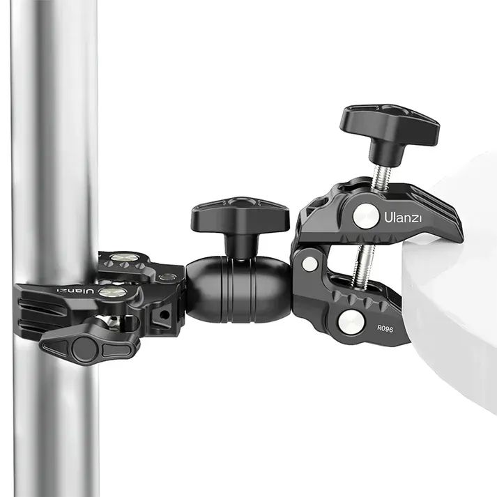 - Это крепление подходит для установки на самые разные поверхности — трубы, столешницы, поручни, штативы, велосипедные рули, осветительные стойки или ветки деревьев. Благодаря диапазону зажимов от 1,2 до 5,8 см, вы можете использовать его практически в любых условиях. Это делает Ulanzi R096 идеальным инструментом для фотографов, видеоблогеров, операторов и контент-мейкеров.