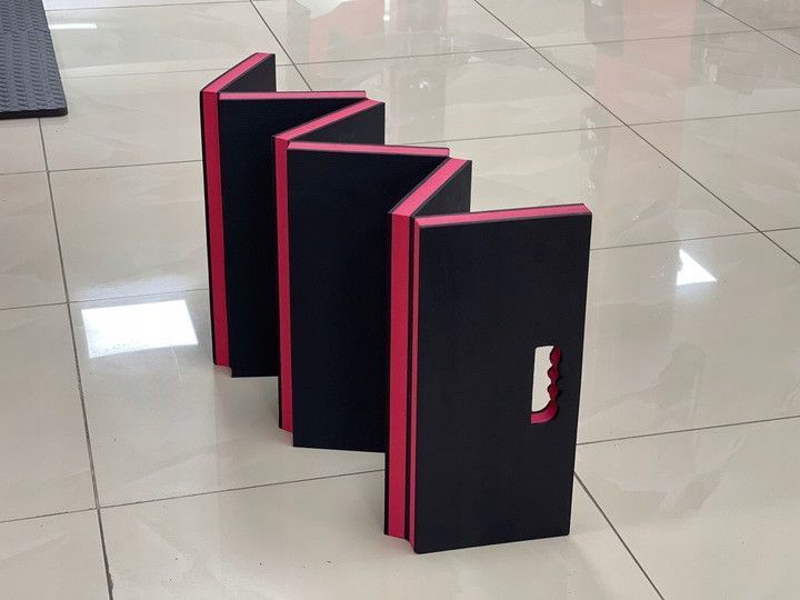 Складная конструкция — коврик состоит из нескольких сегментов, соединённых гибкими перегибами. В разложенном виде образует удобную поверхность для лежания, в сложенном — компактный «блок», который легко поместить на полку или в багажник.
