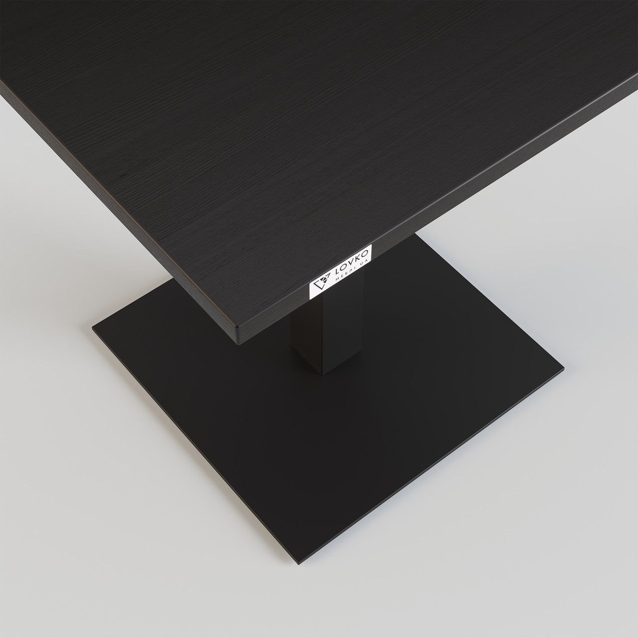 У виготовленні використовуються надійні та практичні матеріали, які мають довговічне покриття. Металева опора виконана з порошковим фарбуванням, що робить її стійкою до вологи та інших негативних впливів. Стільниця виготовляється з ламінованого ДСП товщиною 18 мм, тому має привабливий зовнішній вигляд і невибаглива в догляді.