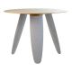 Обідній стіл Rino — це сучасний акцент інтер’єру, який поєднує природність дерева та ніжність текстилю. Кругла стільниця діаметром 100 см виготовлена з МДФ і облицьована шпоном дуба, викладеним у техніці маркетрі — складного декоративного набору шпону, який утворює унікальний малюнок, що грає на світлі та додає об’єму.