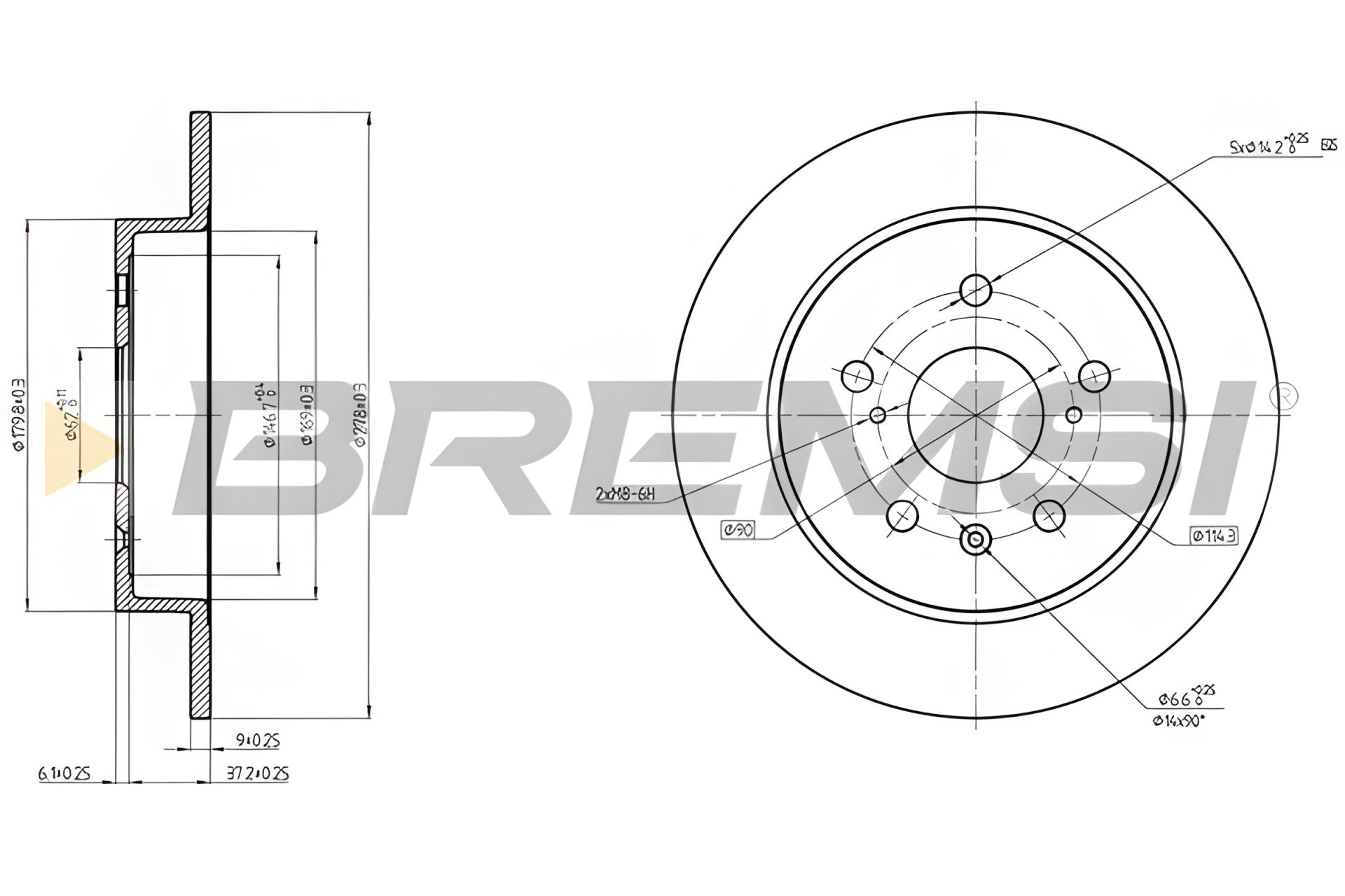 Задний тормозной диск Suzuki SX4 06-(278x9), Bremsi (CD8075S)