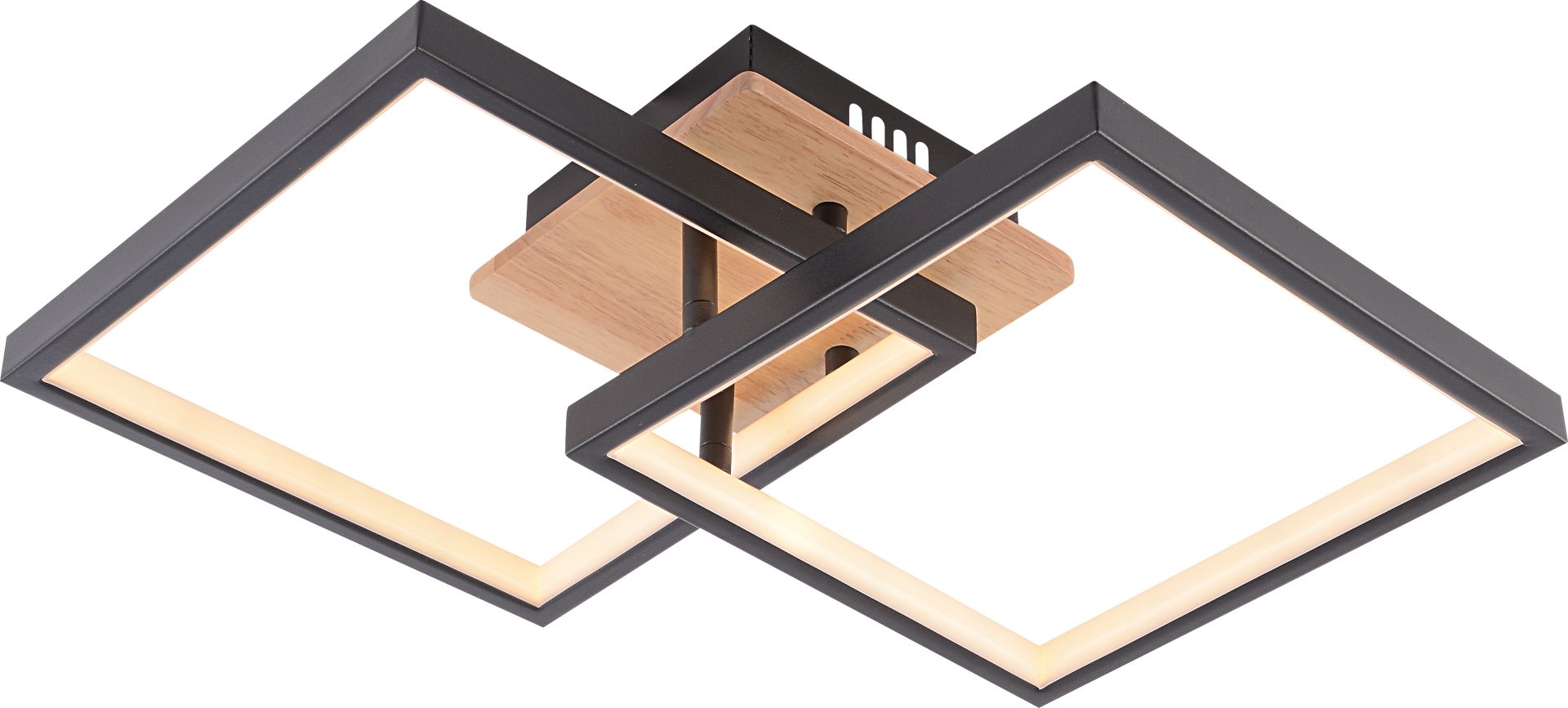 Дизайн: Элегантное сочетание матового чёрного металла с тёплыми вставками дерева создаёт уютную, но современную атмосферу. Прямоугольная форма (размер: 525*330*110 мм) идеально подходит для гостиной, кухни или спальни.