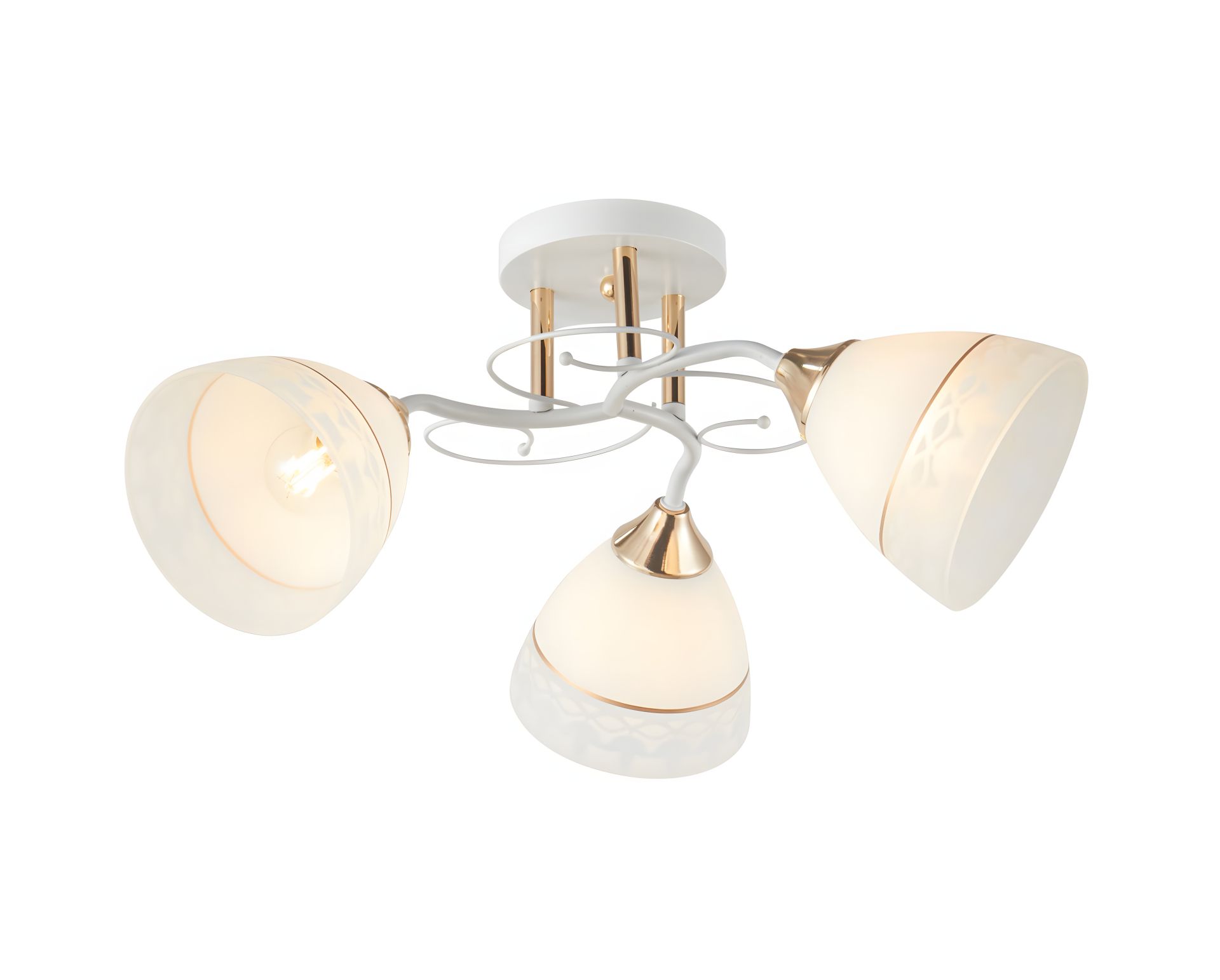 Декоративная люстра V 6411-3 WH+FG сочетает в себе классическую элегантность и современный стиль, создавая неповторимую атмосферу в вашем интерьере. Модель оснащена 27 цоколем и тремя стеклянными плафонами белого матового цвета с изящным принтом и золотым декором, что придает люстру роскошь и праздничную изысканность.