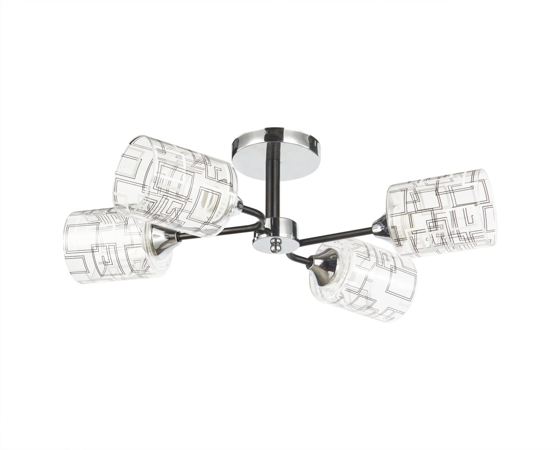 Люстра V 6262-4 CR+BK – это стильное и выразительное решение для современного интерьера, сочетающее элегантность стекла и сдержанный блеск металла. Модель оснащена четырьмя плафонами с цоколем E27, обеспечивающими достаточное освещение для просторных помещений — гостиной, спальни или кухни.