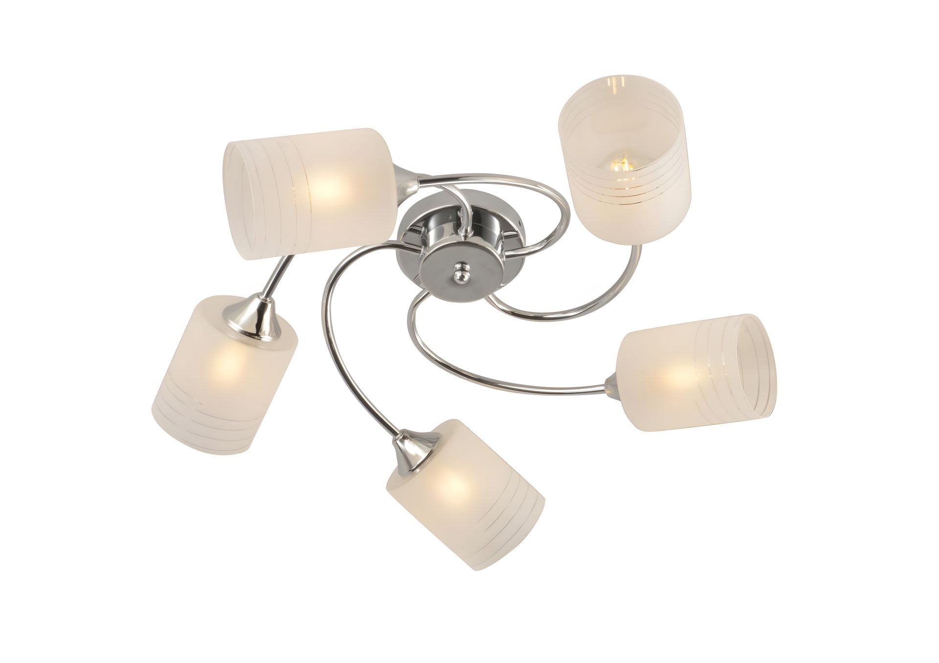 Основой конструкции является прочный хромированный каркас, который придает люстру блеск, визуальную легкость и современный вид. Зеркальный блеск хрома эффектно сочетается с белыми плафонами, образуя сдержанную, но стильную композицию, которая подходит интерьерам в стиле модерн, классика или минимализм.