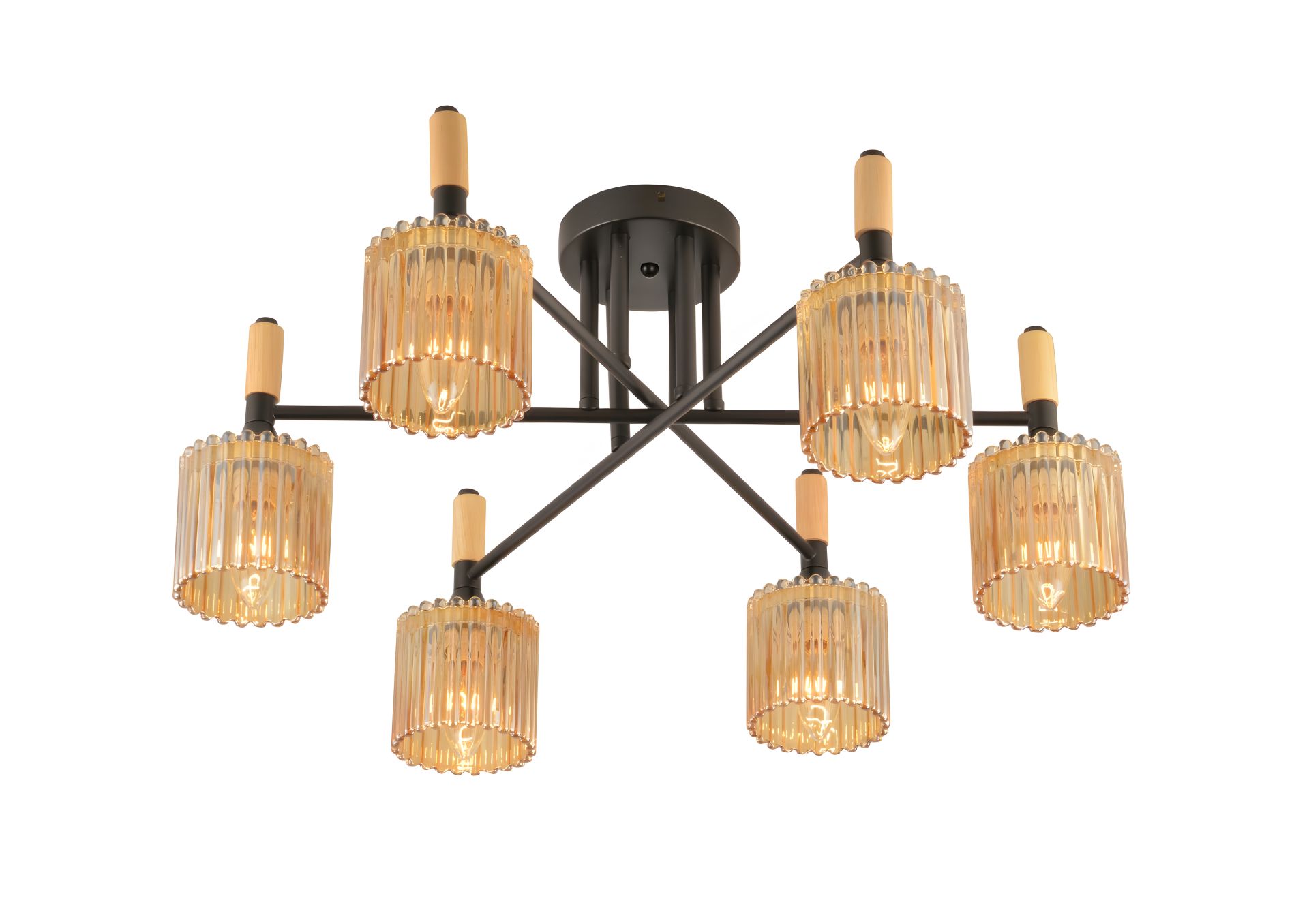 Декоративная люстра IS W70418-6 с черным и деревянным элементами