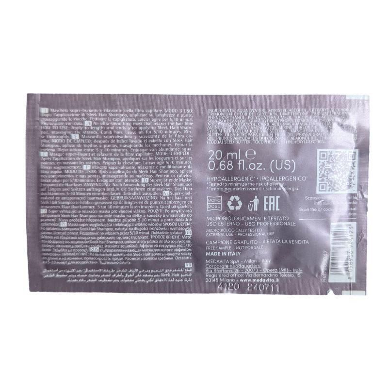 Разглаживающая маска Medavita Keratin Miracle Sleek Hair Mask для пушистых и непослушных волос, пробник саше 20 мл