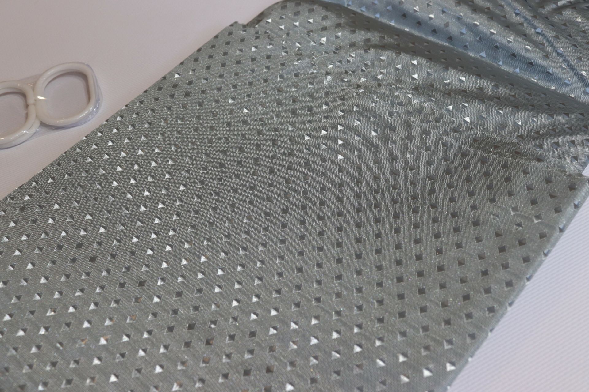 Ткань 100% полиэстер, фактурная, в ромбический рисунок. Стирка возможна. Кольца в комплекте.