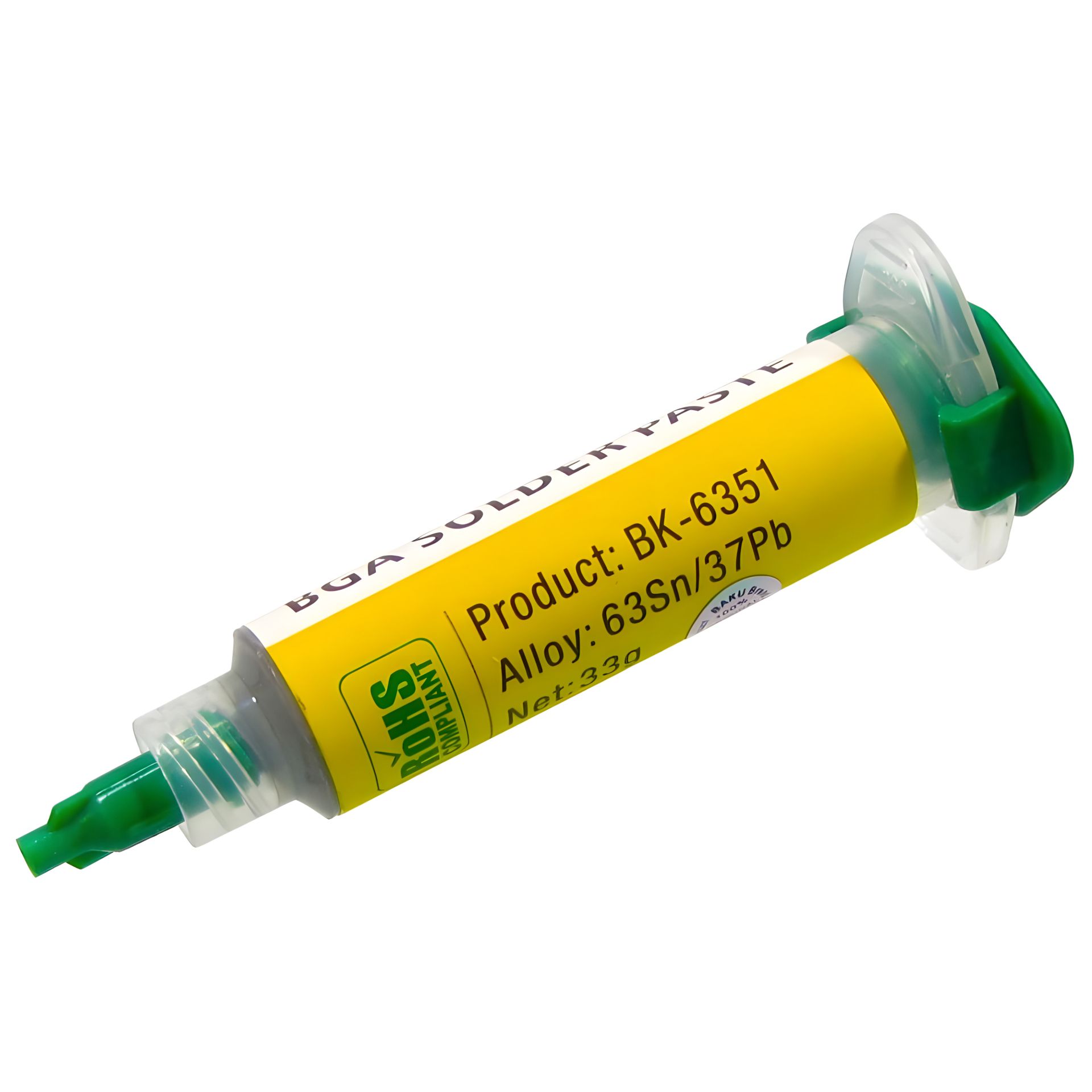 Это классическая паяльная паста на основе сплава Sn63/Pb37, предназначенная для монтажа и ремонта SMD- и BGA-компонентов. Удобный шприц позволяет наносить пасту точно в нужное место, экономно расходуя материал.