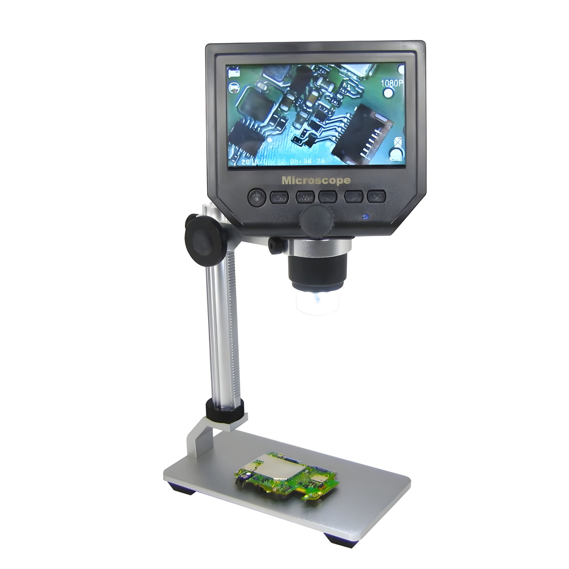 Цифровой микроскоп G600+ предназначен для детального осмотра плат, микросхем, разъемов, ювелирных изделий и других мелких объектов. Устройство позволяет выводить изображение на встроенный экран, а также записывать фото и видео на карту памяти microSD, превращая микроскоп в полноценный инструмент для ремонта, диагностики и обучения.