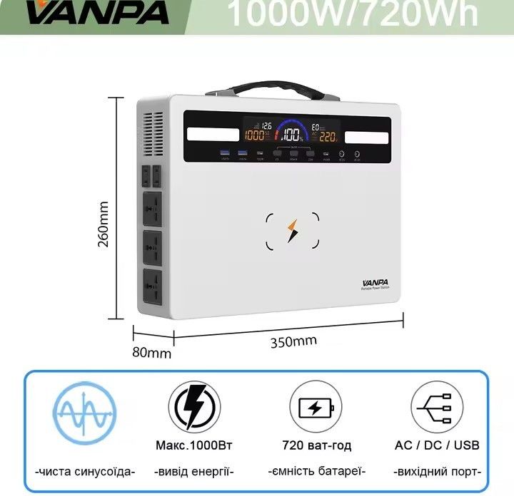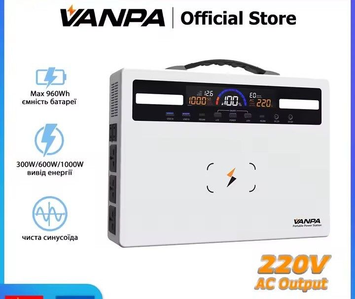 Портативная зарядная станция, мощность 1000w, батарея 720wh