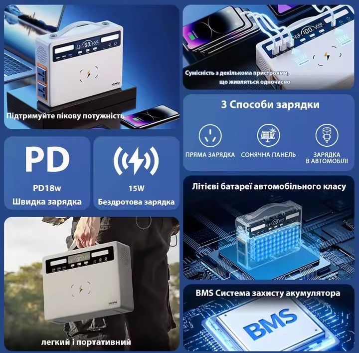 Портативная зарядная станция мощность: 1000w, батарея: 720wh.