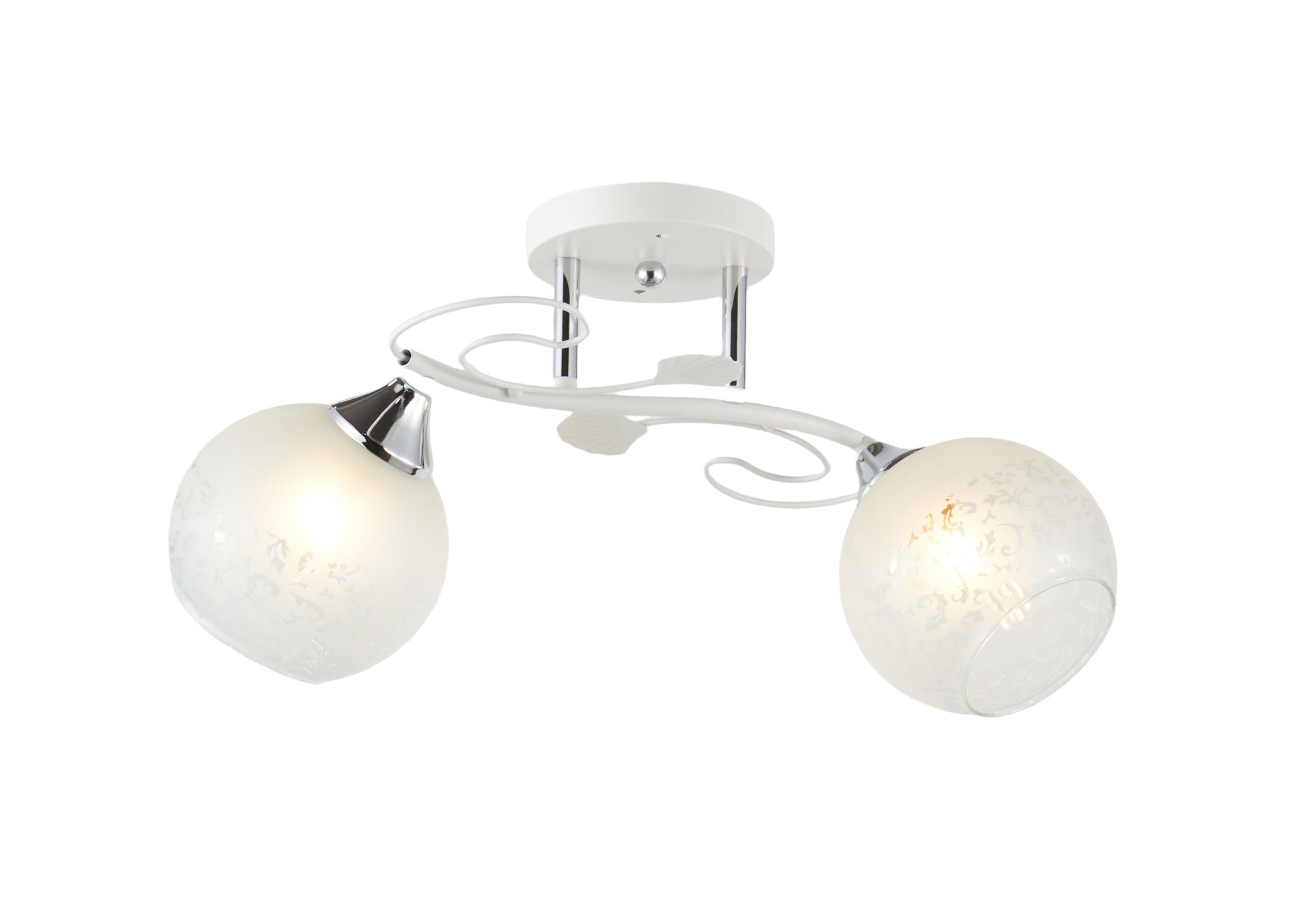 Декоративная люстра V 6343-2 WH+CR – стильный и элегантный светильник, созданный для интерьеров, где важны легкость, изящество и приятное мягкое освещение. Модель оснащена двумя плафонами с цоколем E27, выполненными из белого матового стекла с прозрачным декоративным принтом, который придает люстре особый шарм и делает его визуально легким и изысканным.