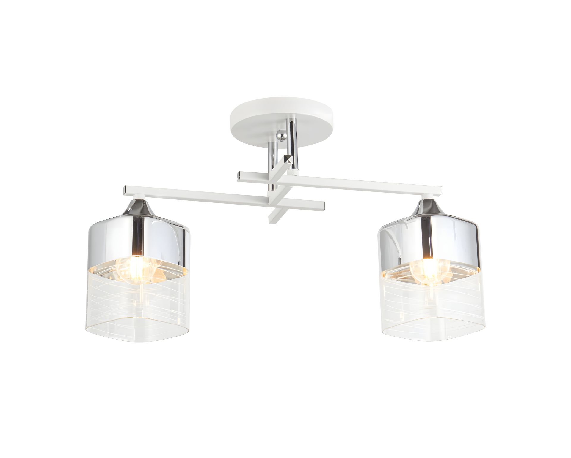 Декоративная люстра V 6309-2 WH+CR – стильный светильник с современным характером, удачно сочетающий геометричность форм и элегантные декоративные акценты. Модель оснащена двумя плафонами с цоколем E27, выполненными в квадратной форме – такое решение придает люстре лаконичности и трендовости.